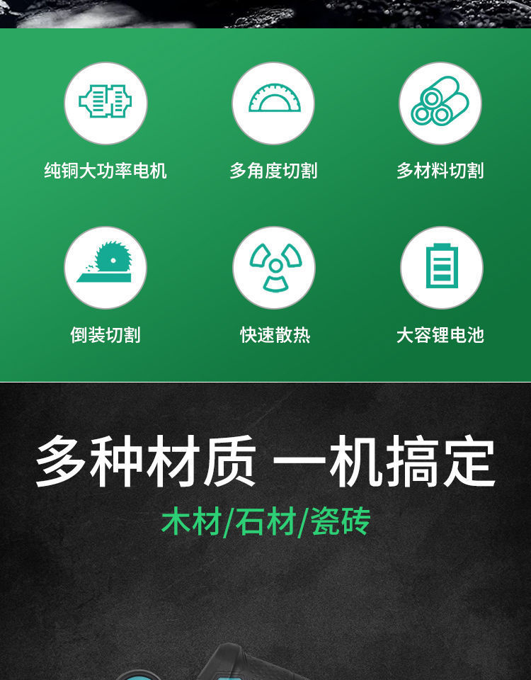 7寸家用多功能圓盤切割機充電式手持電圓鋸手提倒轉無線切割圓鋸