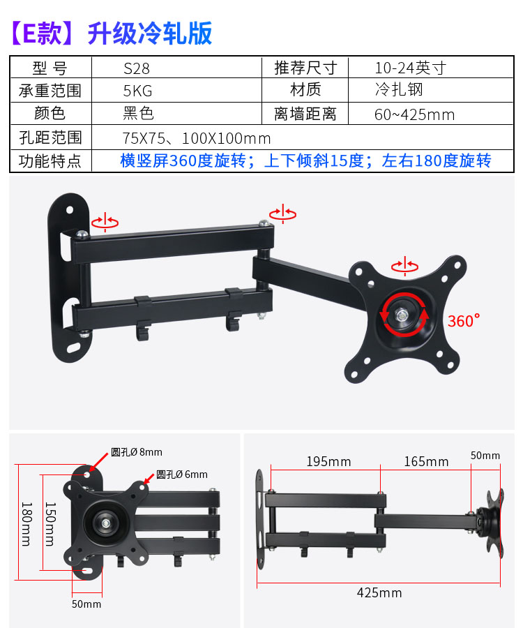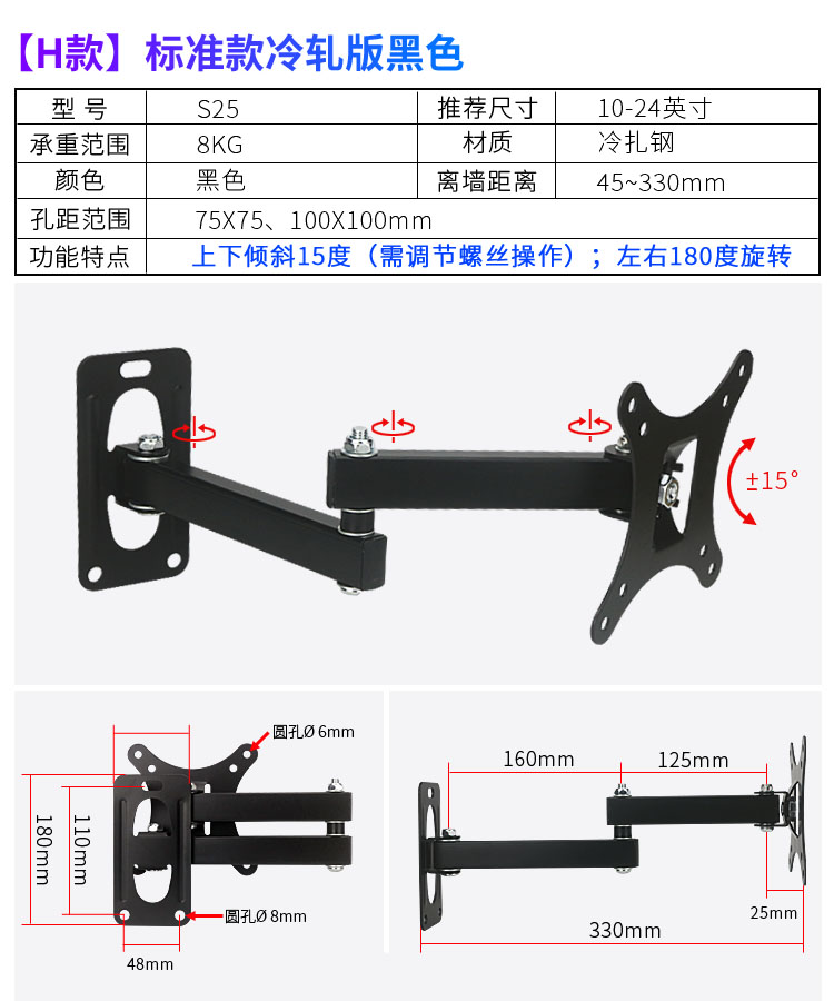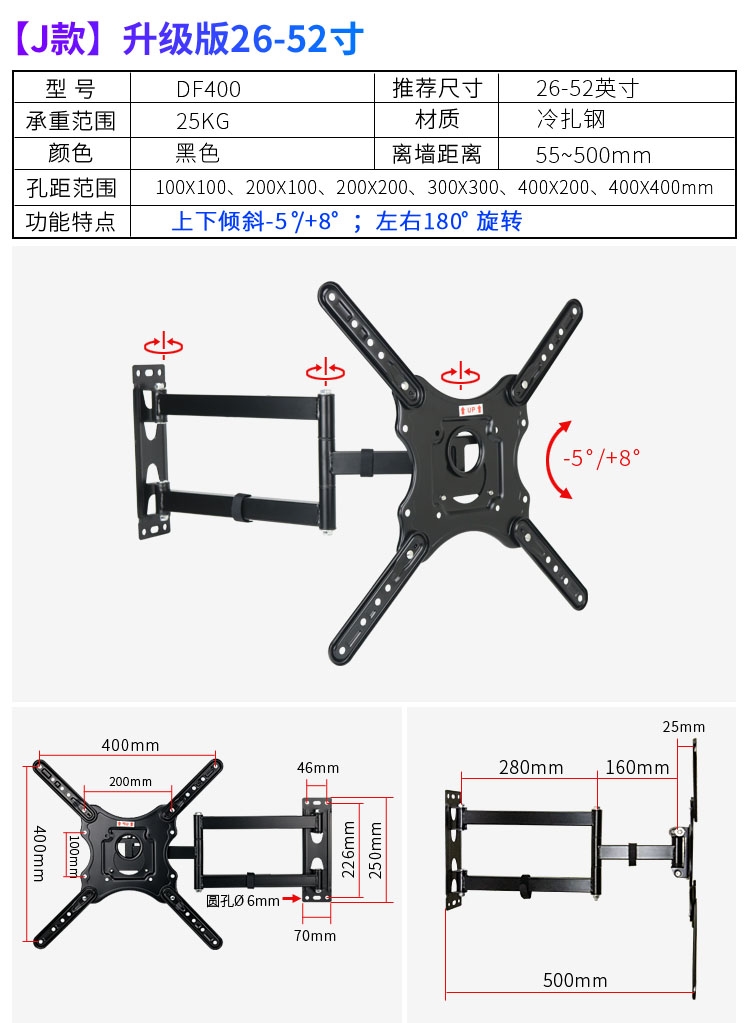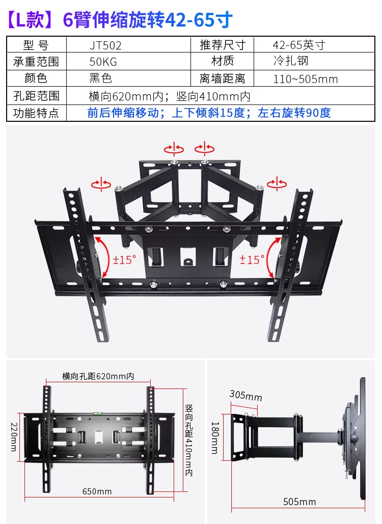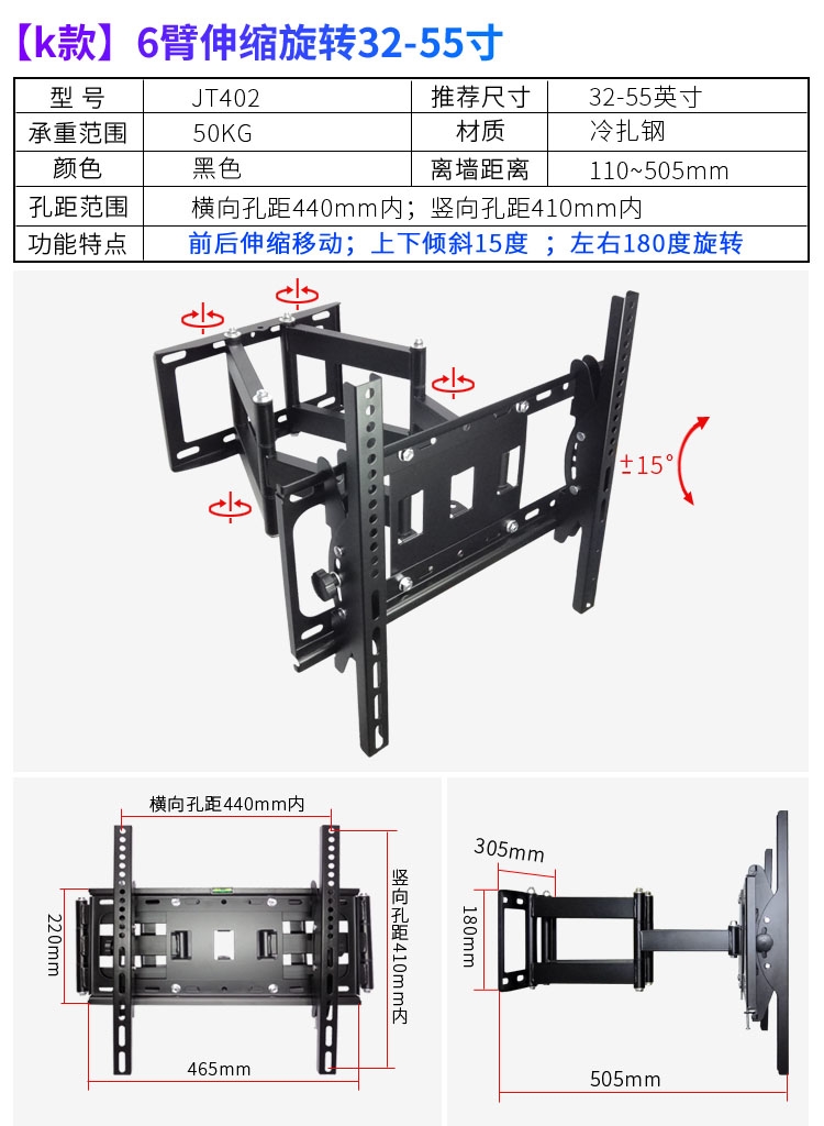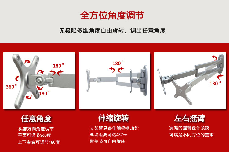 萬向旋轉可伸縮電視機掛架可調掛墻架