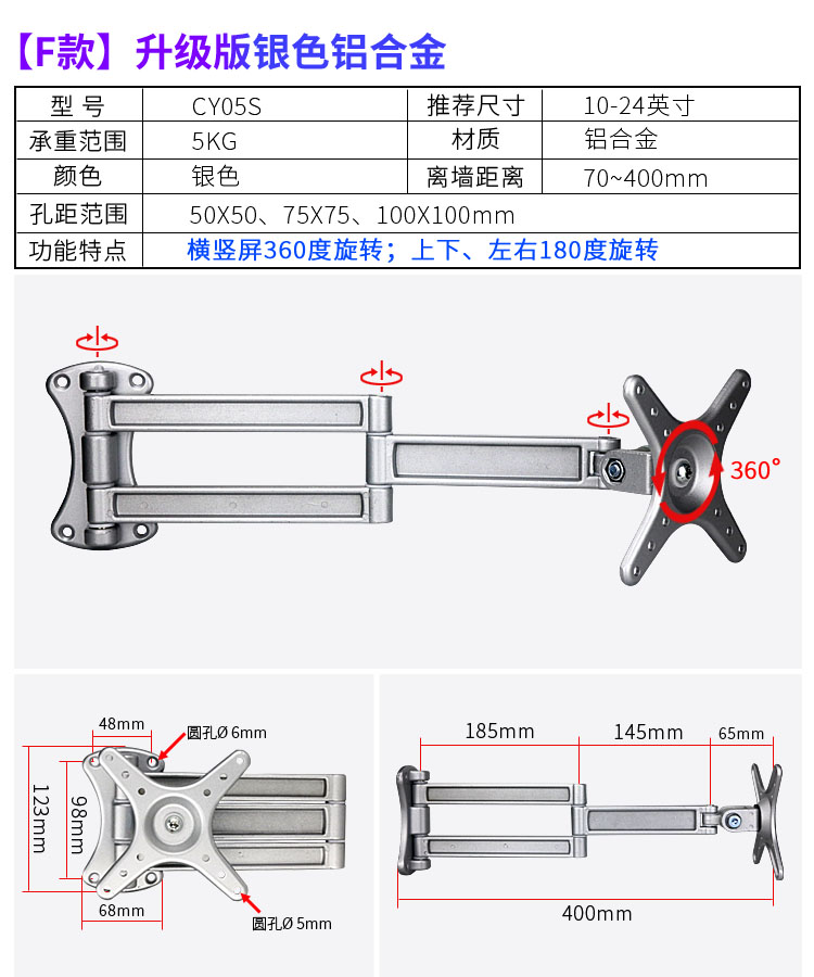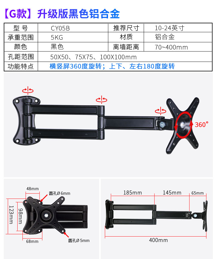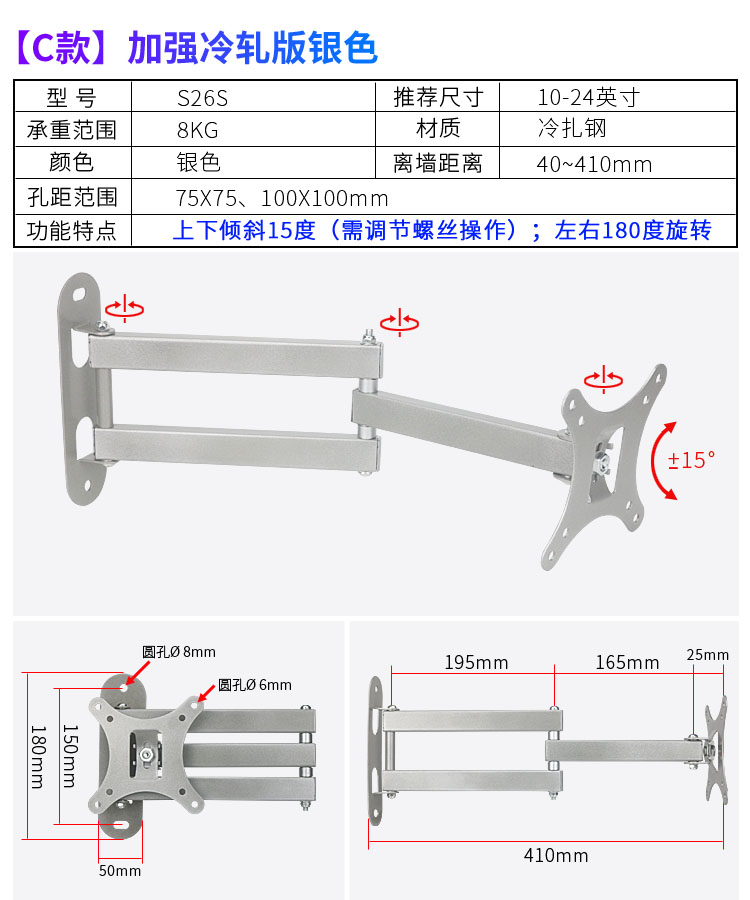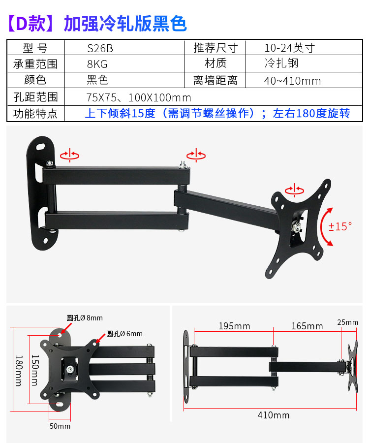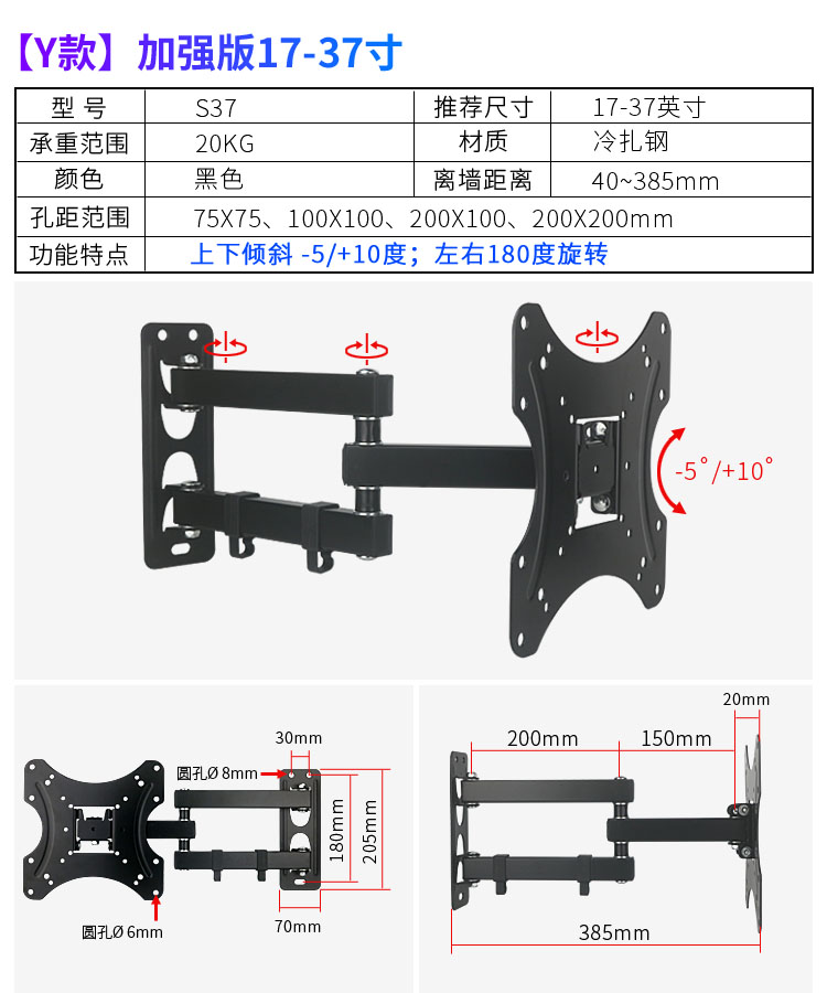 萬向旋轉可伸縮電視機掛架可調掛墻架