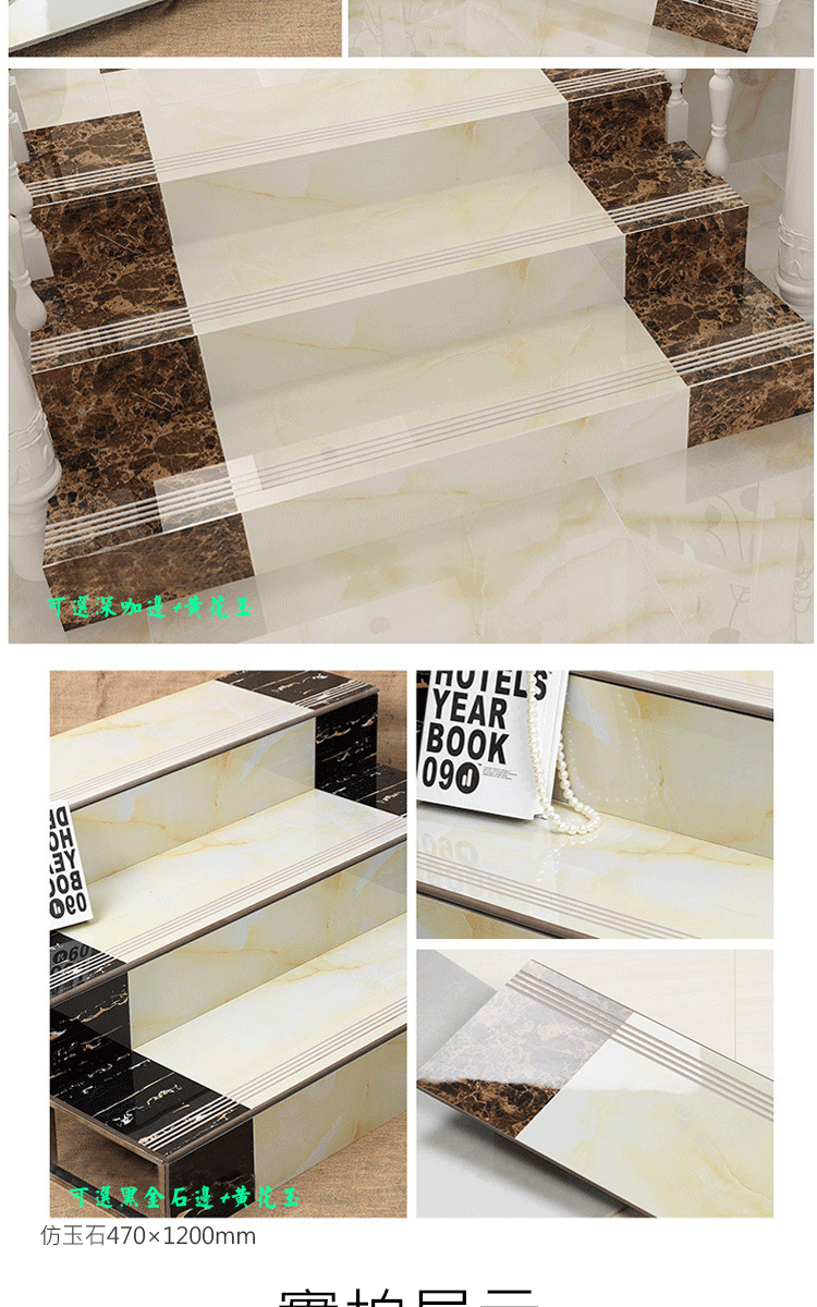 1200x470mm通體大理石樓梯踏步磚樓梯磚瓷磚加工階梯磚防滑耐磨