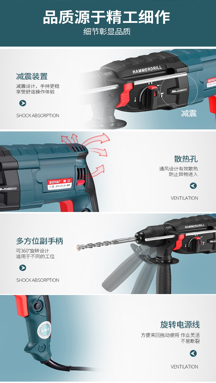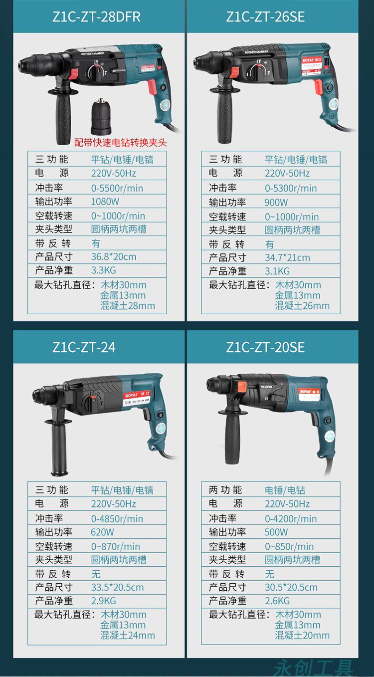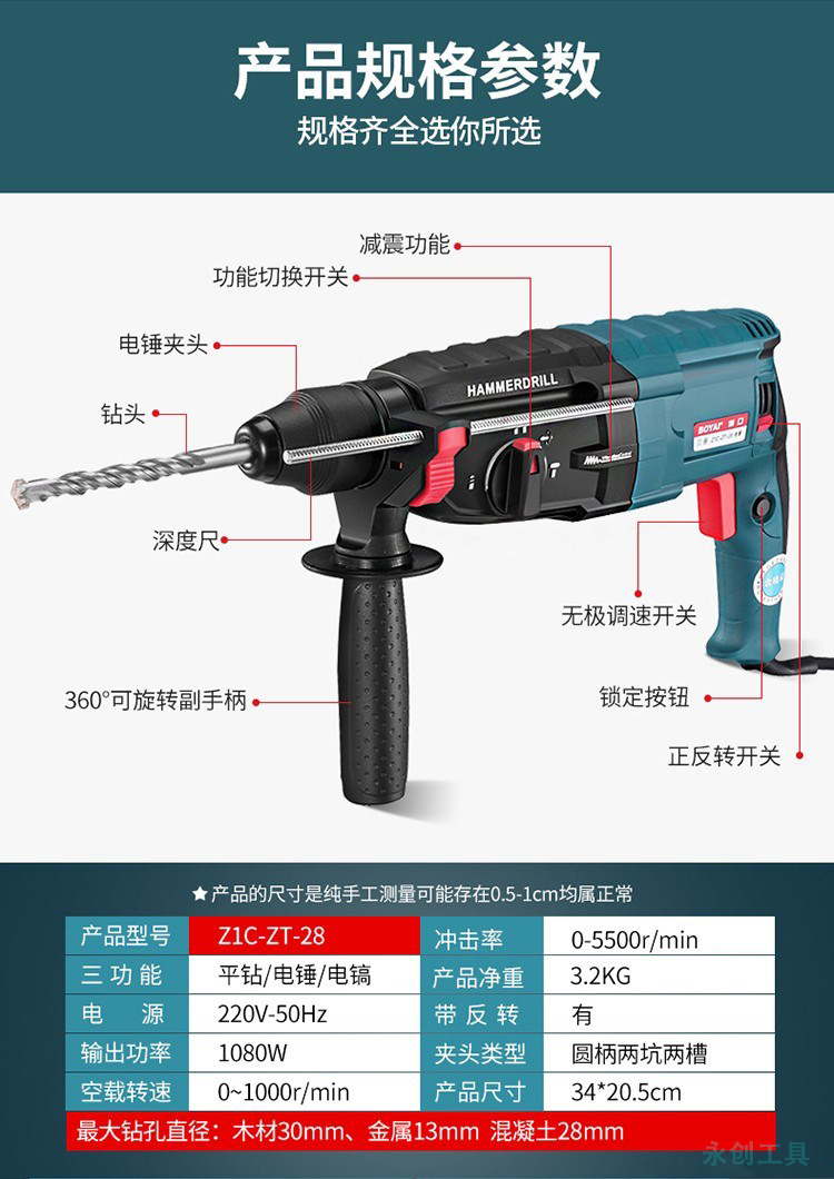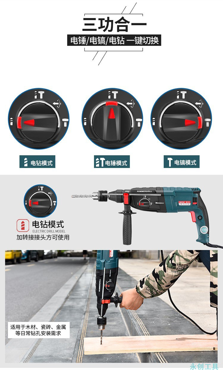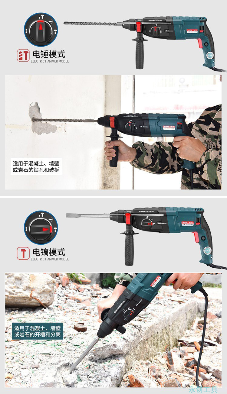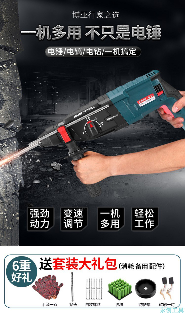 電錘電鑽電鎬三用多功能衝擊鑽家用工業大功率混凝土輕型電捶