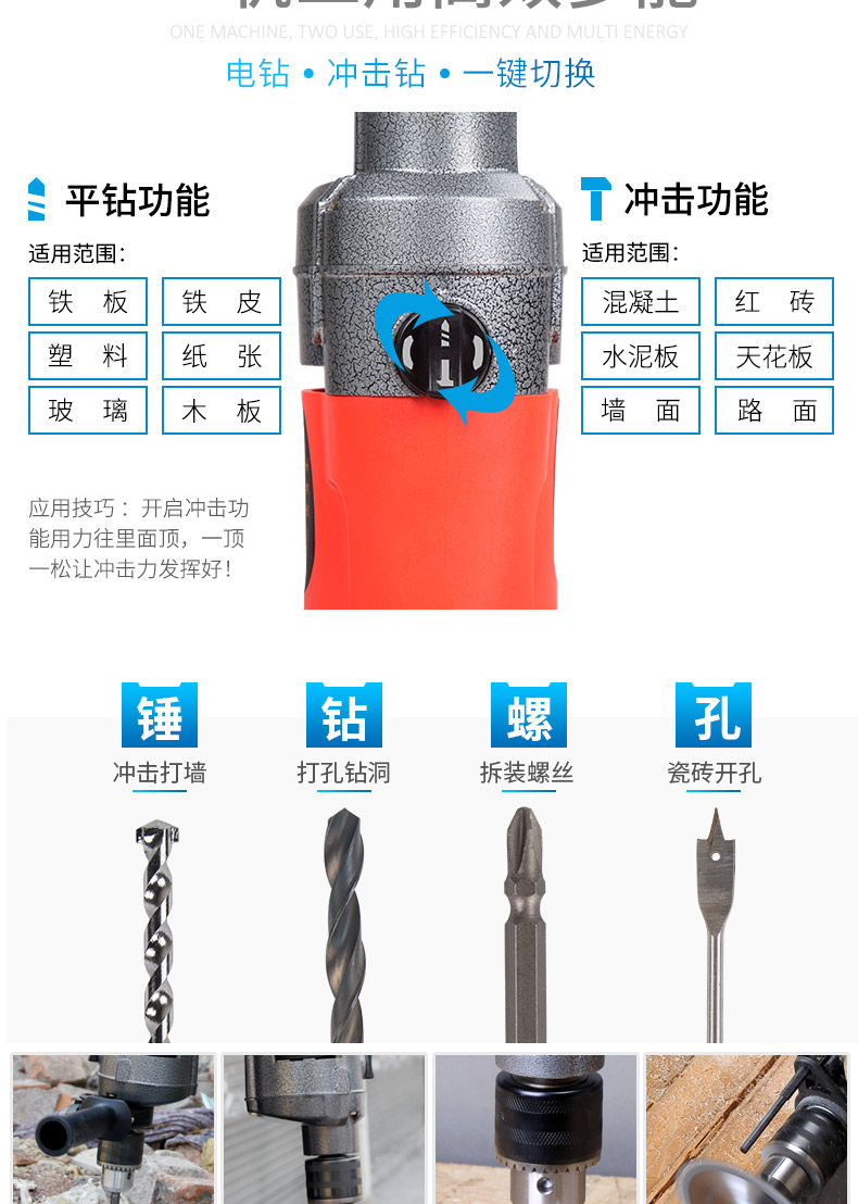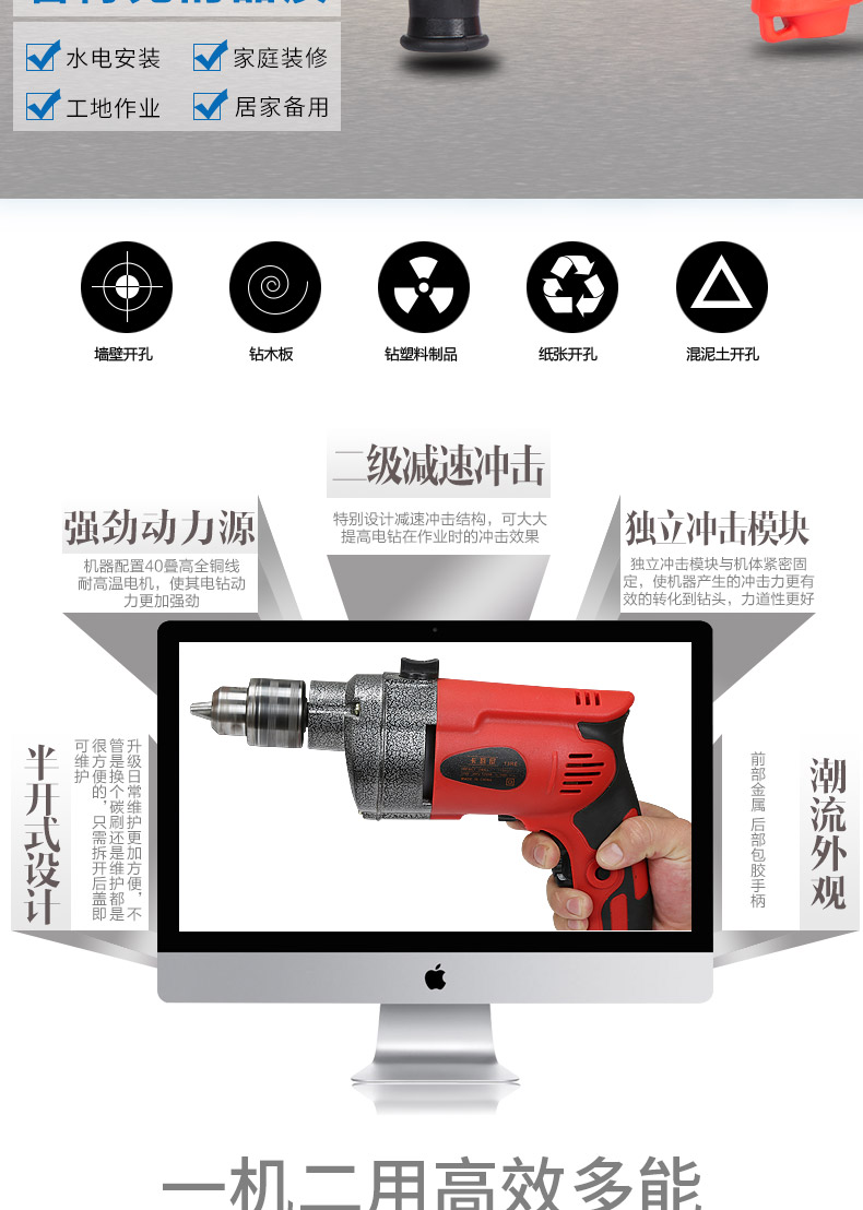 卡瓦尼手持電鑽家用衝擊鑽電動螺絲刀鑽打孔電轉工具小型電錘