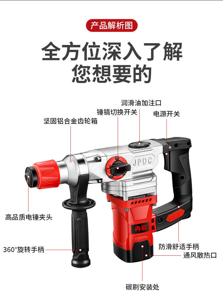 電錘電鎬兩用大功率工業級多功能衝擊鑽三用家用電鑽電動工具