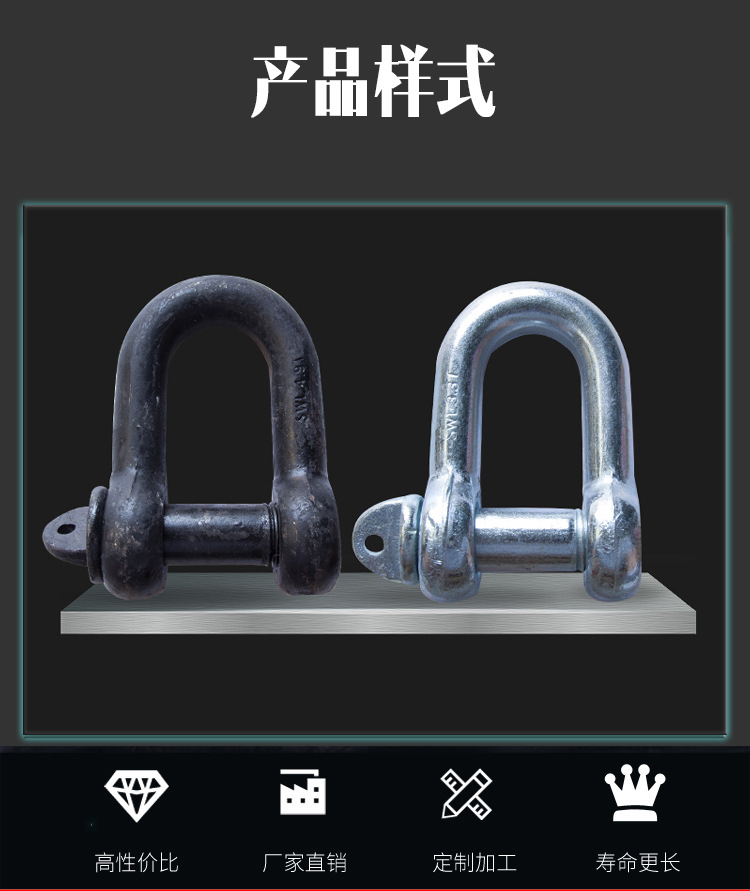鍍鋅合金鋼d型卸扣 u型不鏽鋼馬蹄扣 起重吊環吊裝弓型美式卸扣