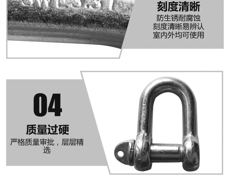 d型弓形卸扣索具起重船用U形吊環鋼絲繩連接扣 304不鏽鋼D型卸扣