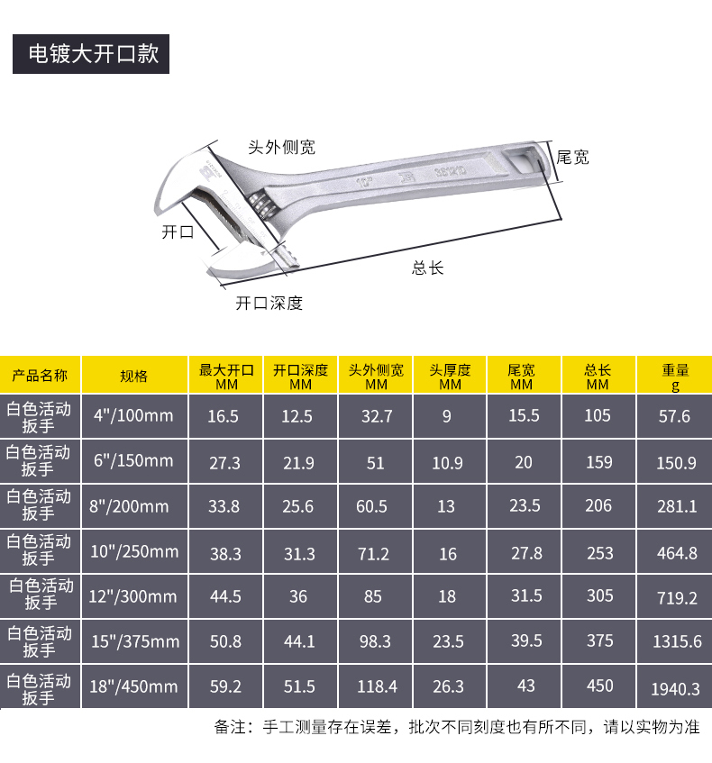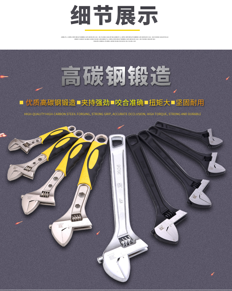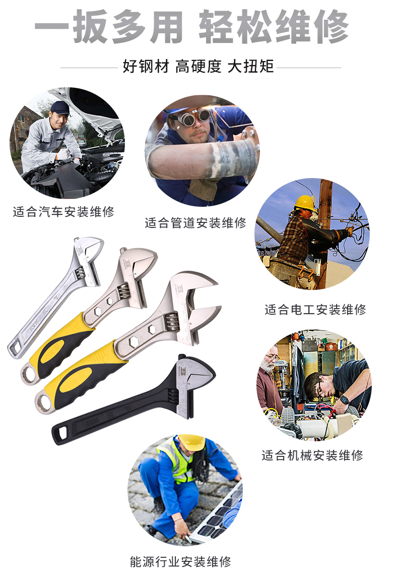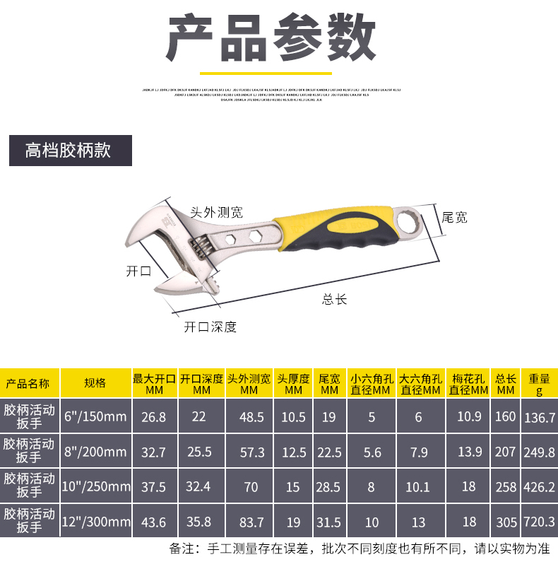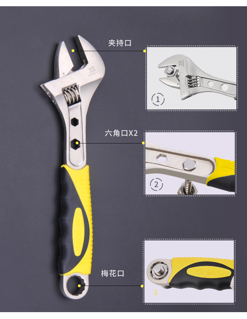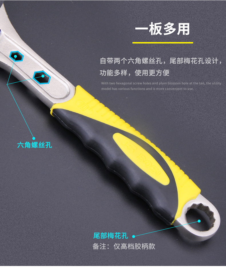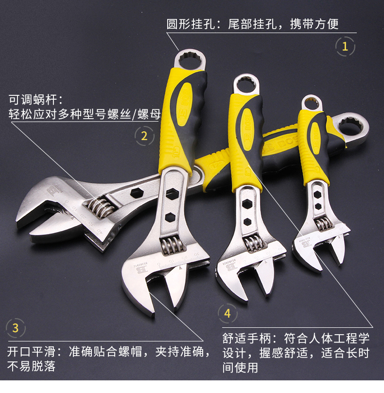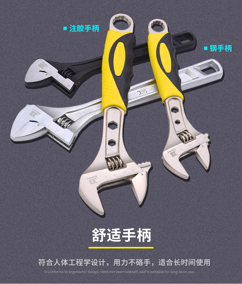 波斯大開口8寸活動扳手五金汽修機修多功能活絡板手活口塑柄活扳