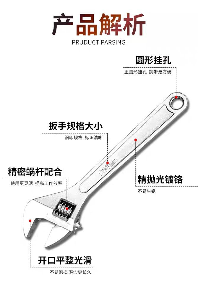 高碳鋼活動扳手大開口多功能板子五金工具活絡扳