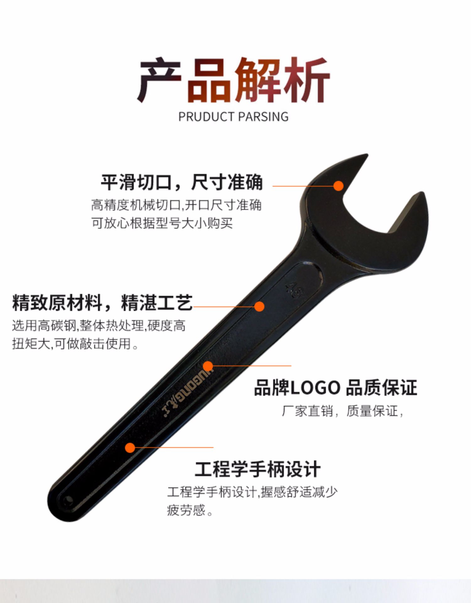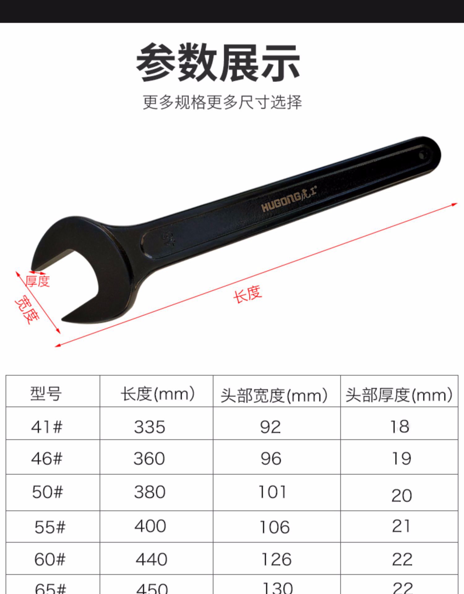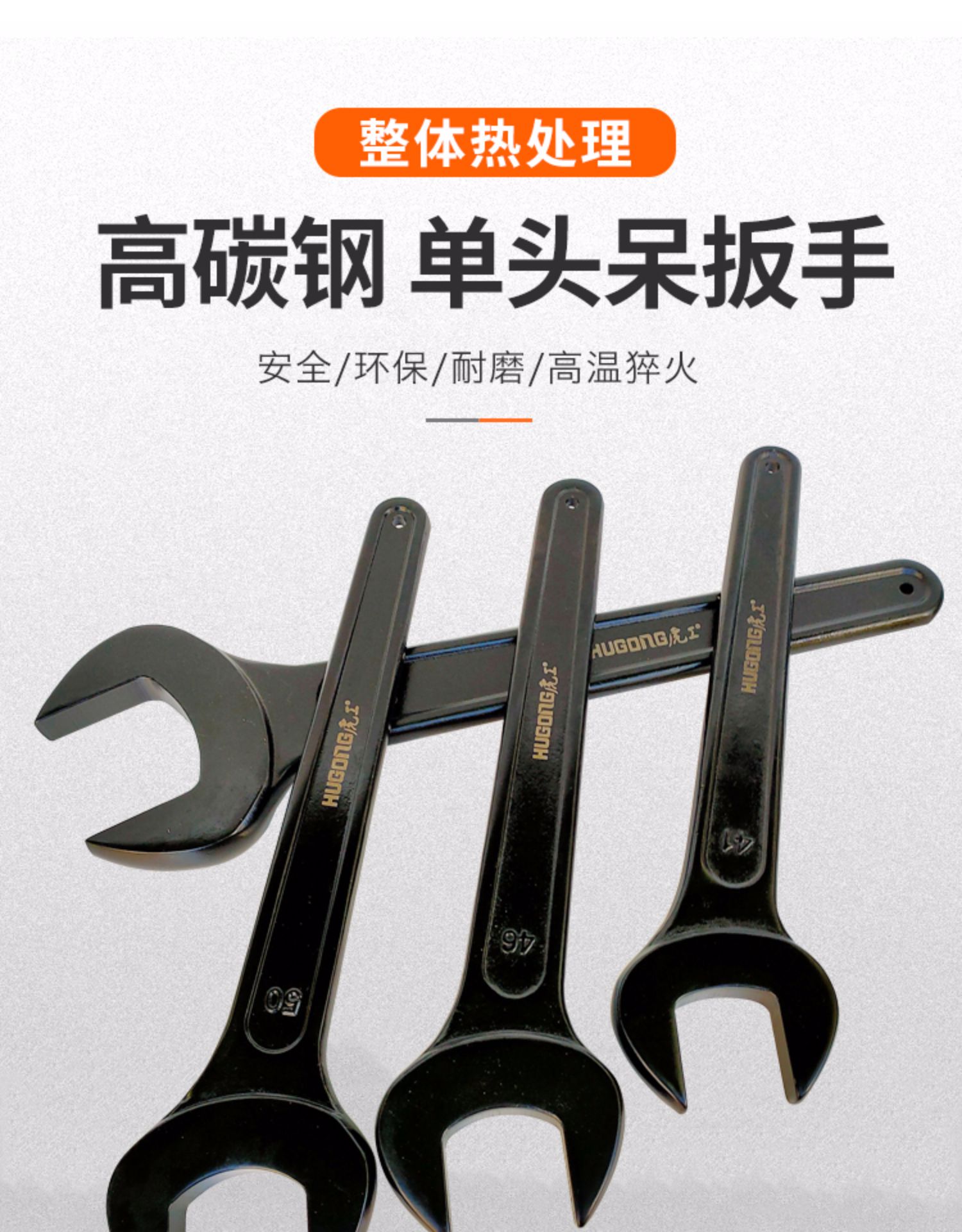 重型單頭開口呆扳手黑色死口長手柄叉扳41-46-50-55-60-65mm
