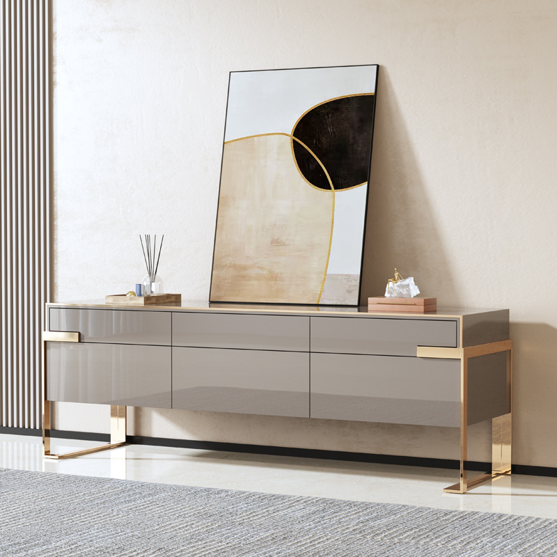 意式輕奢電視櫃港式地櫃簡約後現代臥室影視櫃金屬電視櫃地櫃傢俱