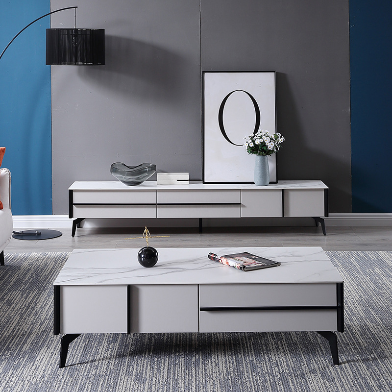 輕奢茶几電視櫃鋼化玻璃組合新款大小戶型現代簡約大理石大號傢俱