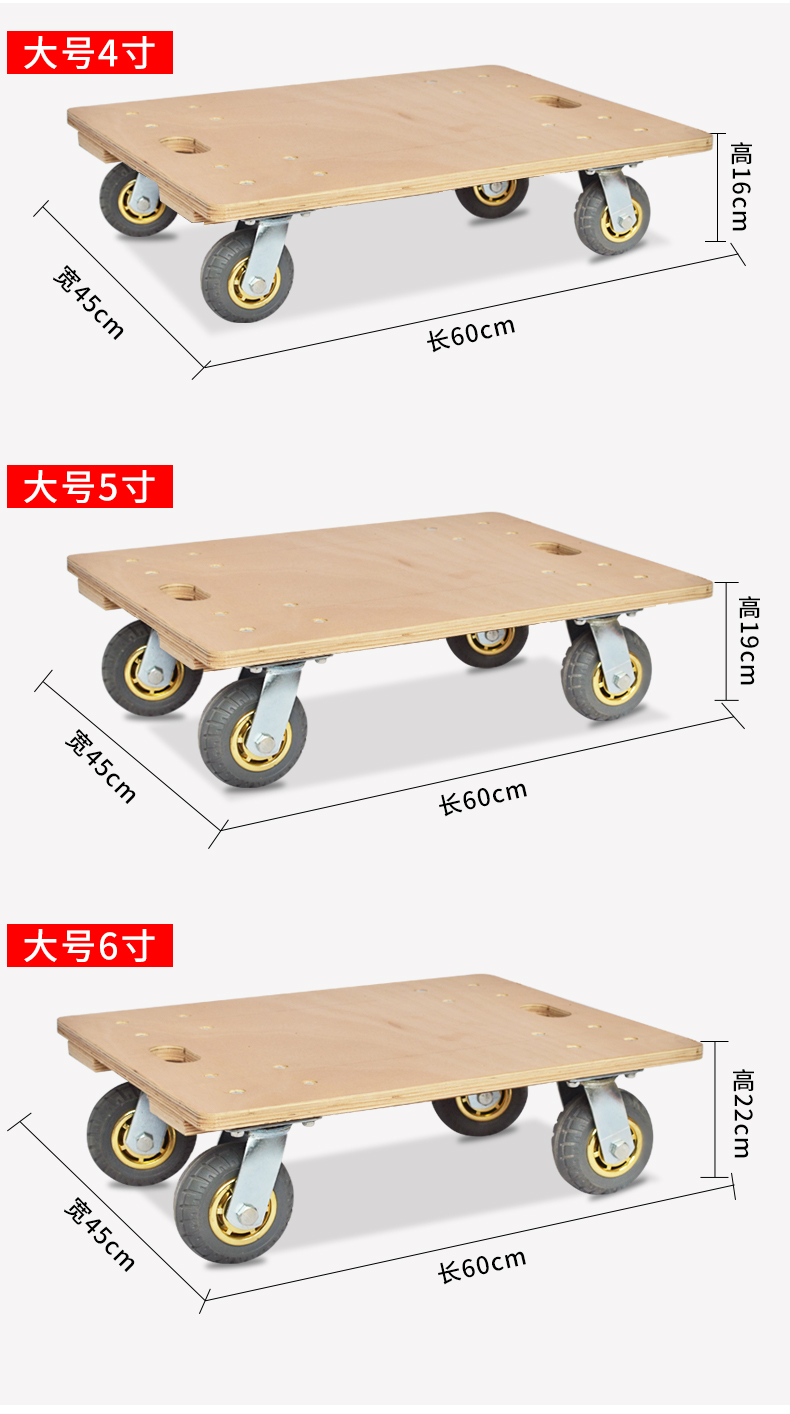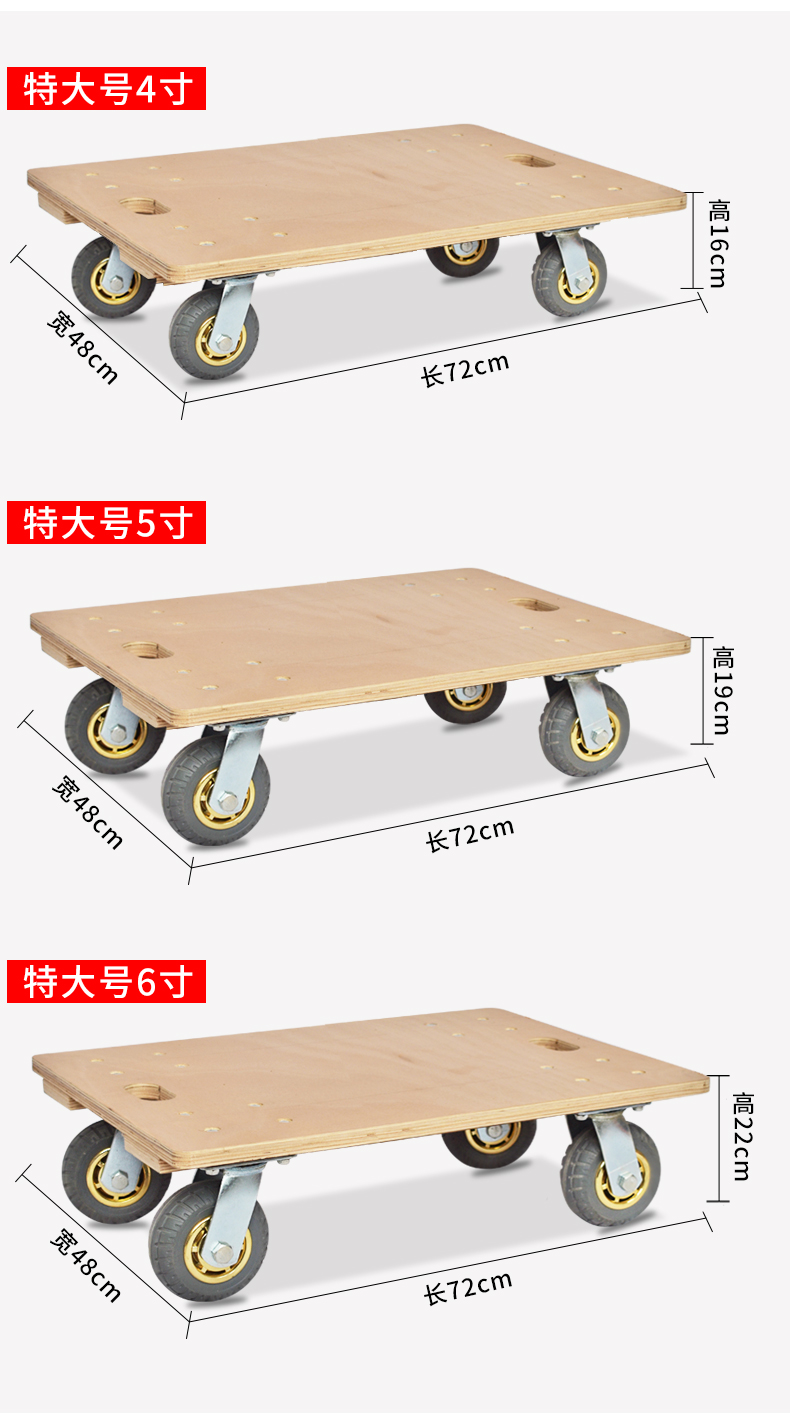 木板車烏龜車平板小推車四輪週轉車拉貨車搬運拖車重型靜音萬向輪