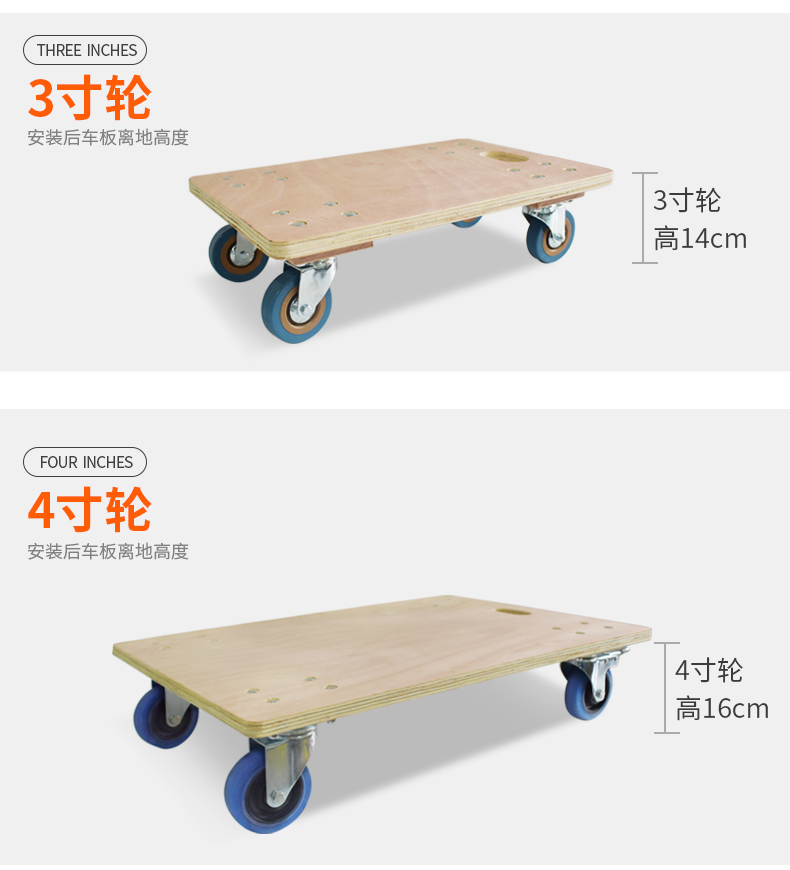 木板車烏龜車平板小推車四輪週轉車拉貨車搬運拖車家用靜音萬向輪