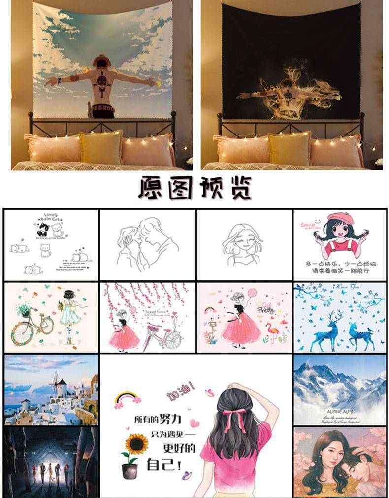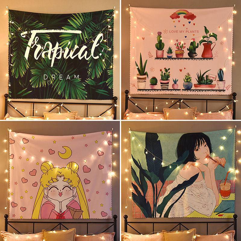 背景布動漫牆布背景牆面裝飾房間宿舍牀頭布毯置網紅ins風掛布.