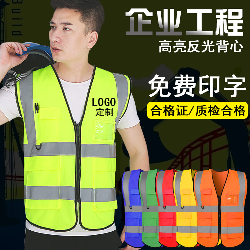 聖馳反光背心反光馬甲多口袋反光衣施工環衛園林建築夜間定製印字