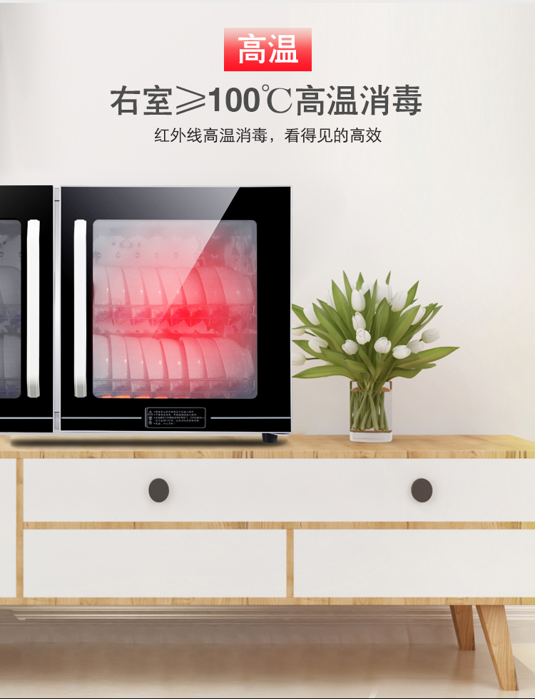 家用消毒櫃廚房櫃式鋼化玻璃臭氧紅外線雙門不鏽鋼