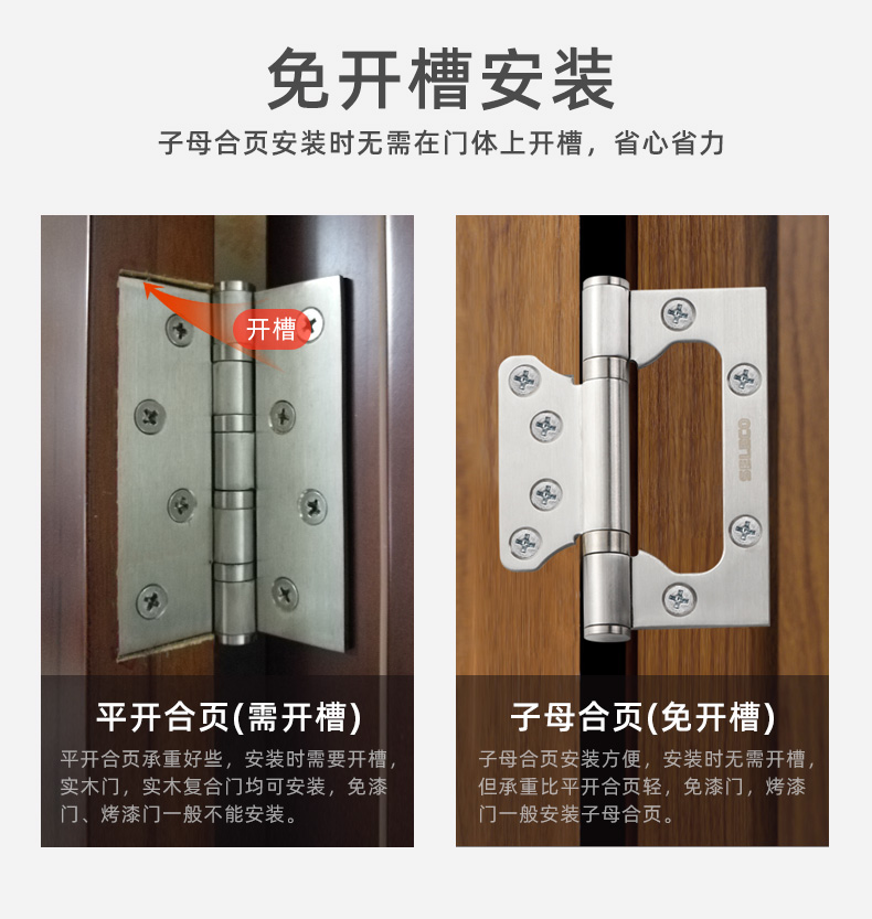 免開槽4寸加厚不銹鋼子母合頁