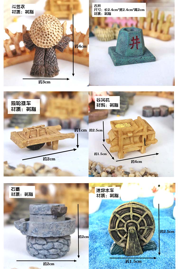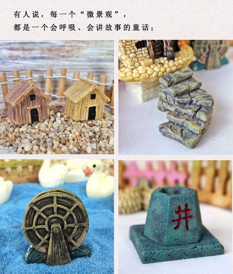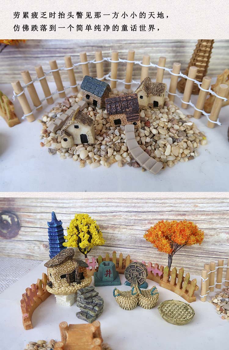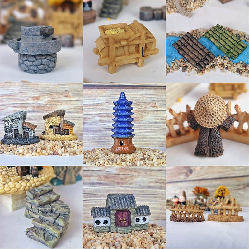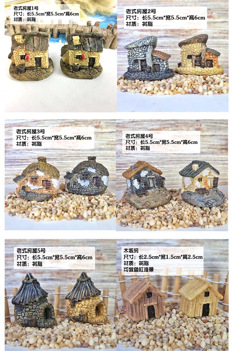 微景觀古風小擺件擺件農家房子桌面迷你園藝花盆水族假山裝飾造景