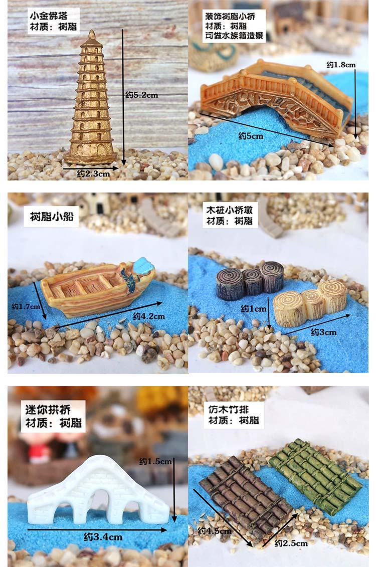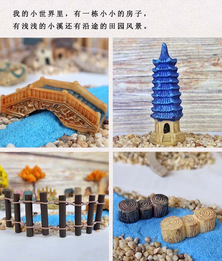 微景觀盆栽造景卡通樹脂小擺件 創意水上走廊裝飾 生態瓶手工小橋