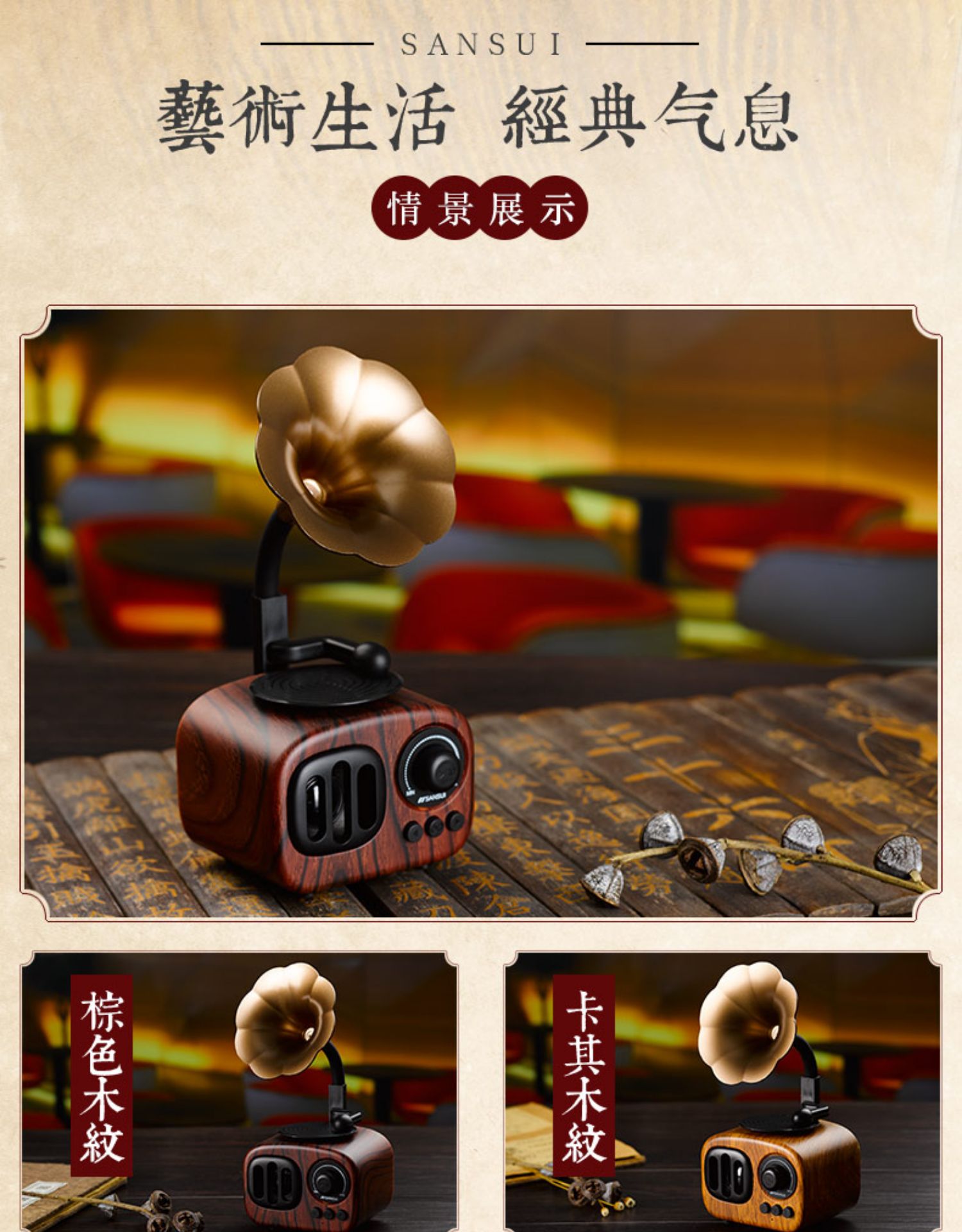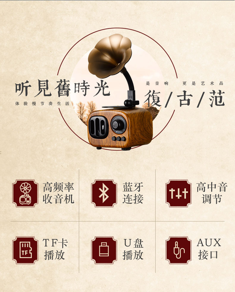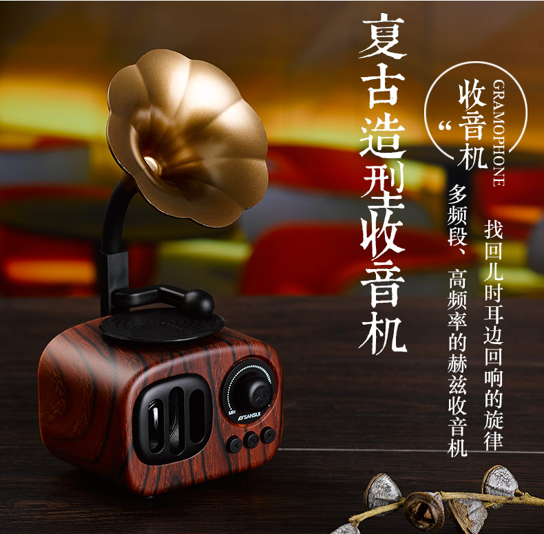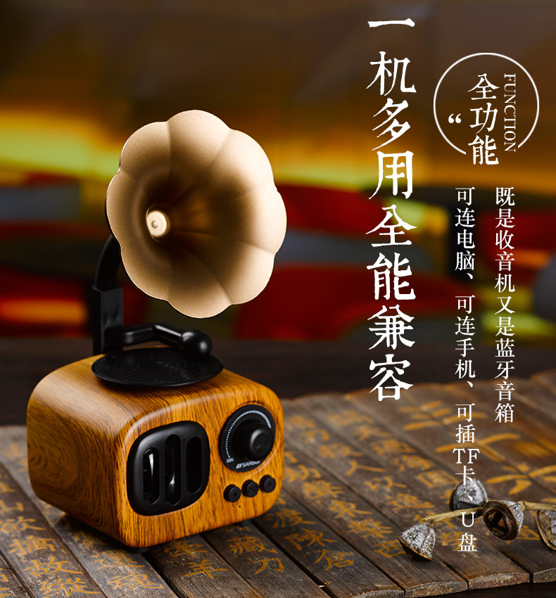 藍牙音箱手機無線迷你復古留聲機小音響插卡U盤收音機電腦低音炮