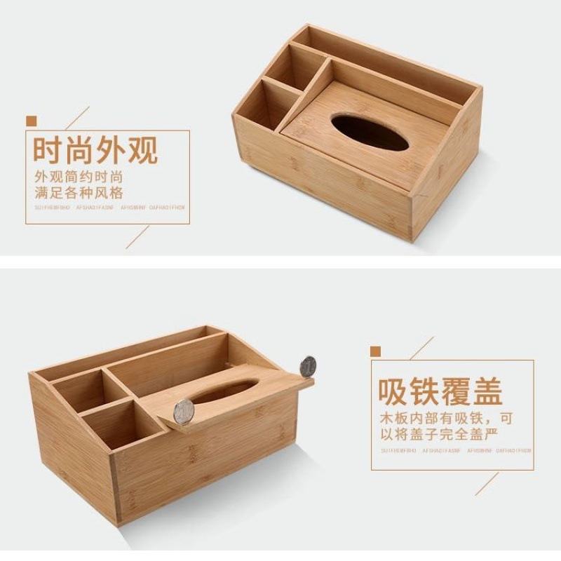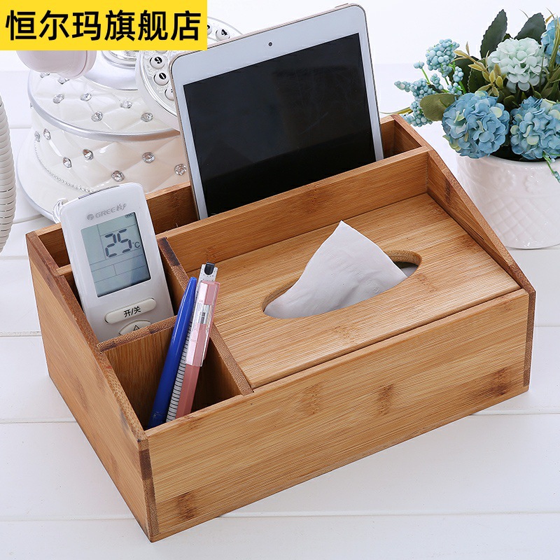 竹木多功能紙巾盒創意桌面收納盒客廳遙控器收納盒餐廳抽紙盒