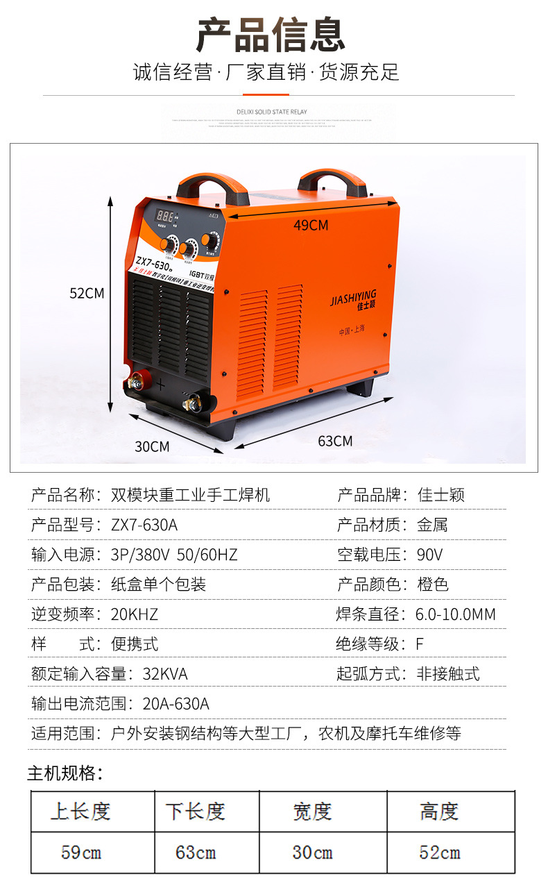 佳士穎ZX7-630A 500 400B雙模塊重工業逆變直流電焊機