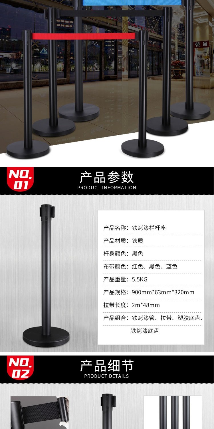 2米不鏽鋼一米線護欄隔離帶欄杆座排隊柱警戒圍欄3米黑烤漆伸縮帶
