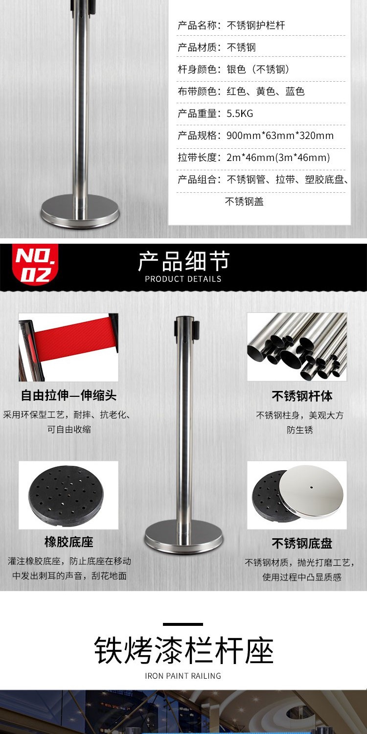 一米線欄杆座隔離帶伸縮帶學校酒店銀行排隊護欄活動不鏽鋼圍欄
