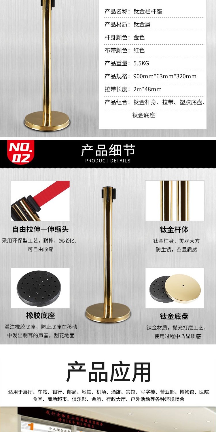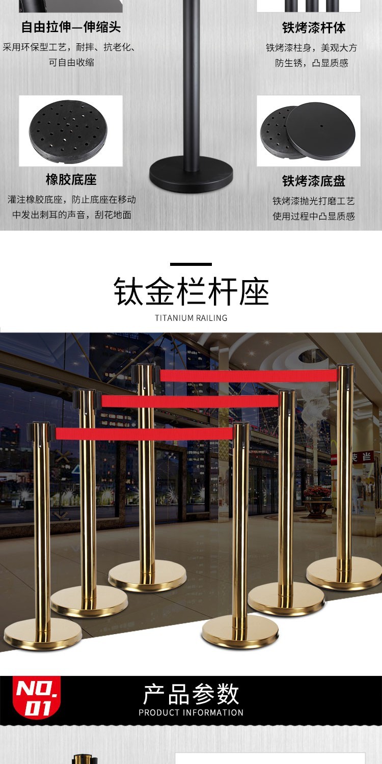 一米線鈦金隔離排隊護欄杆2米線不鏽鋼伸縮圍欄警戒帶烤漆底座柱