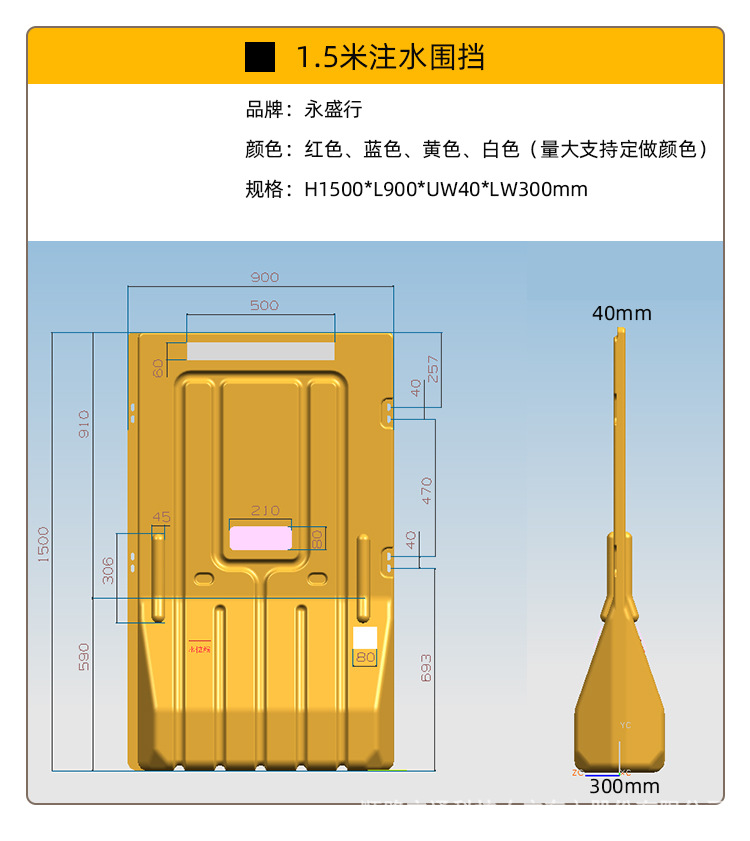 1.8高安全圍擋圍欄塑料水馬可移動隔離墩可注水