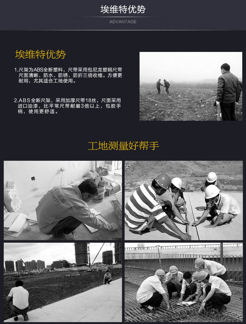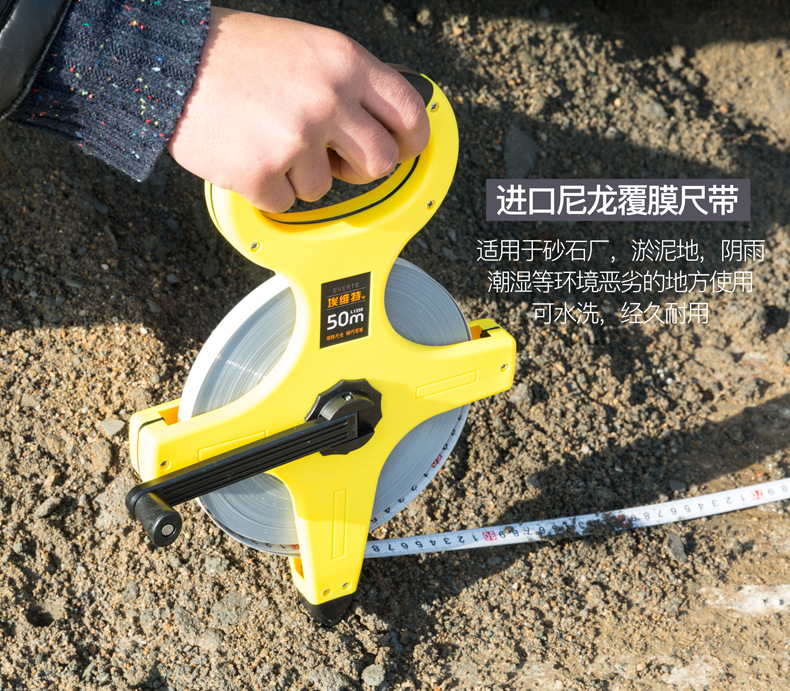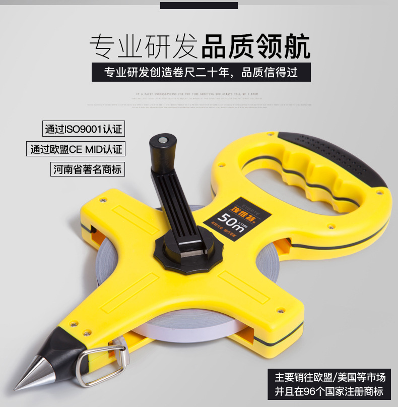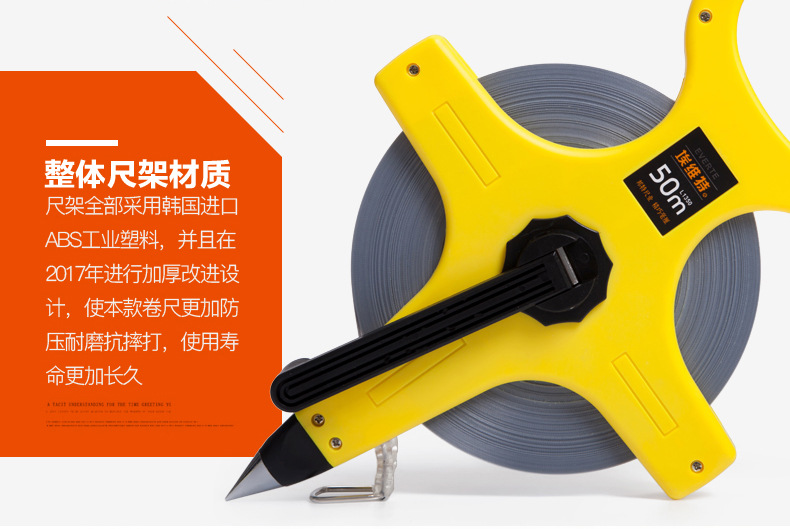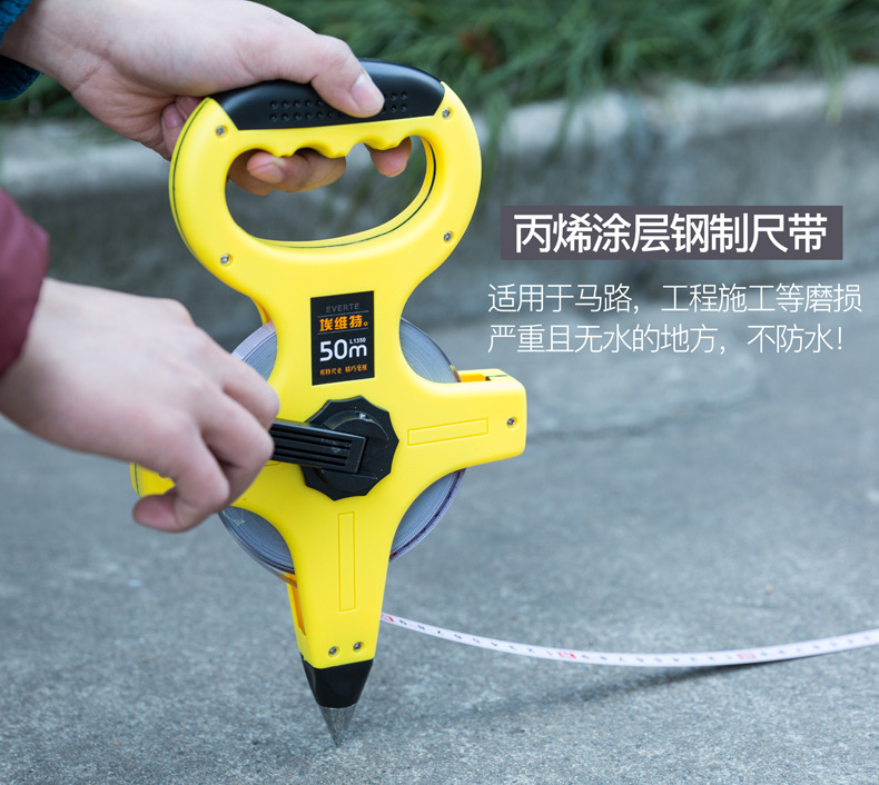 工業級手提尺鋼架尺大架鋼捲尺飛機架尺30米50米100米插地工程尺