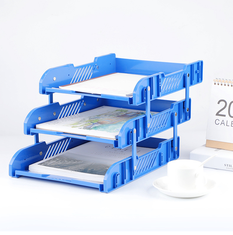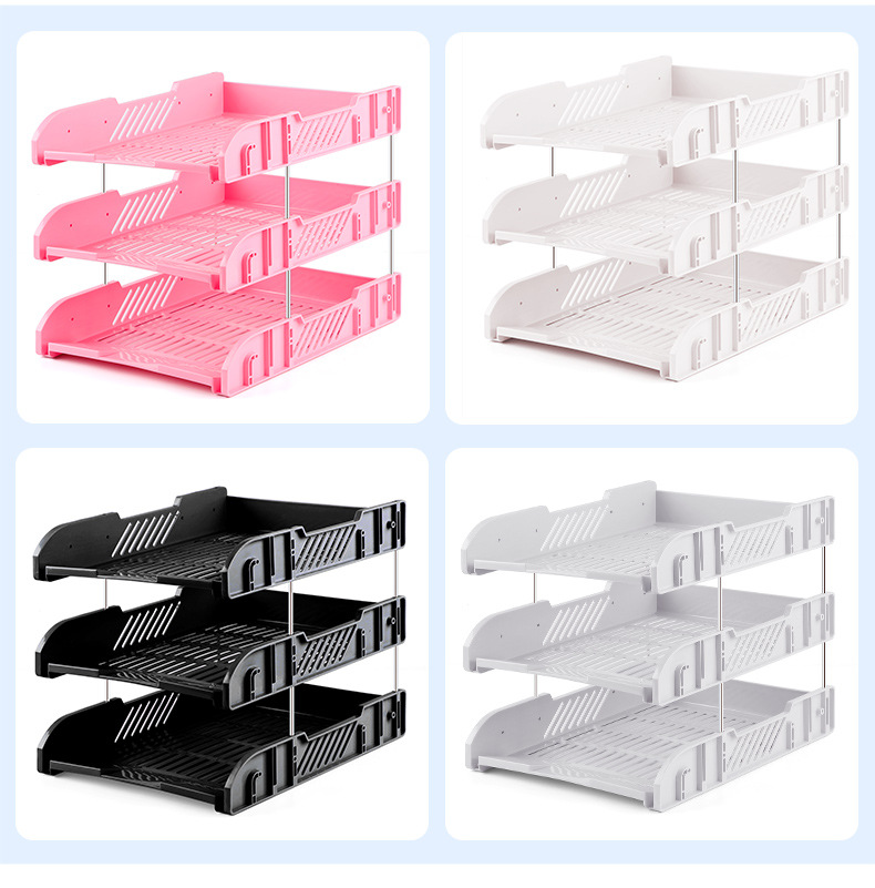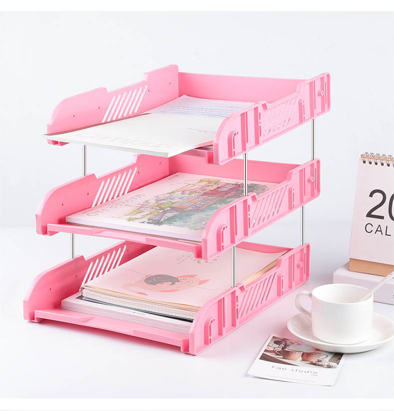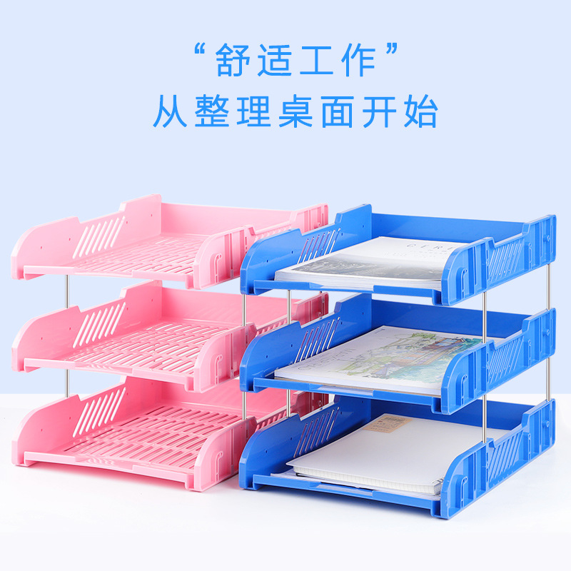 a4文件盤文件欄文件夾架桌面辦公塑料3層文件管理收納架資料架子