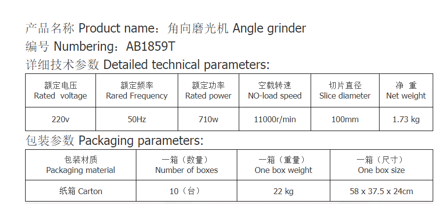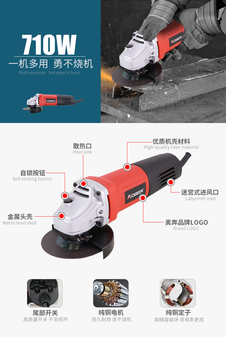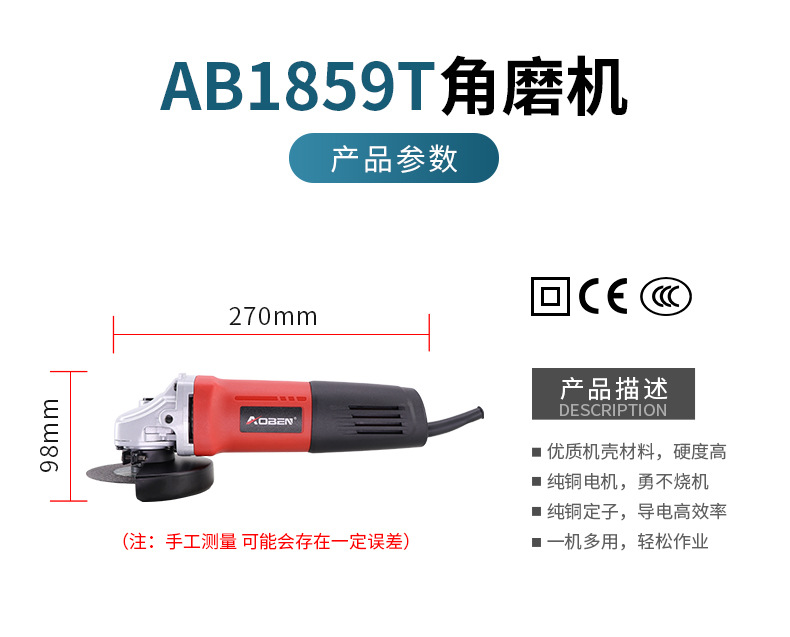 AB1859T角向磨光機工業級角磨機100手砂輪手磨機電動工具