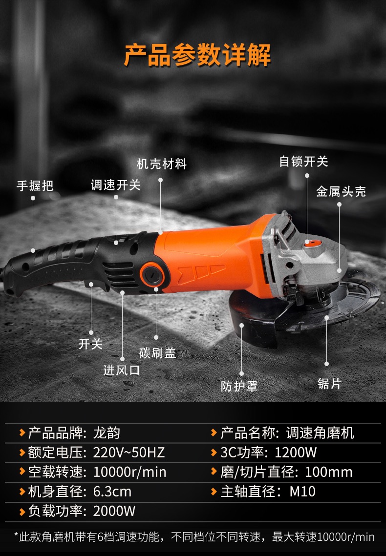 龍韻調速角磨機多功能家用磨光手磨機小型打磨切割機手砂輪拋光機