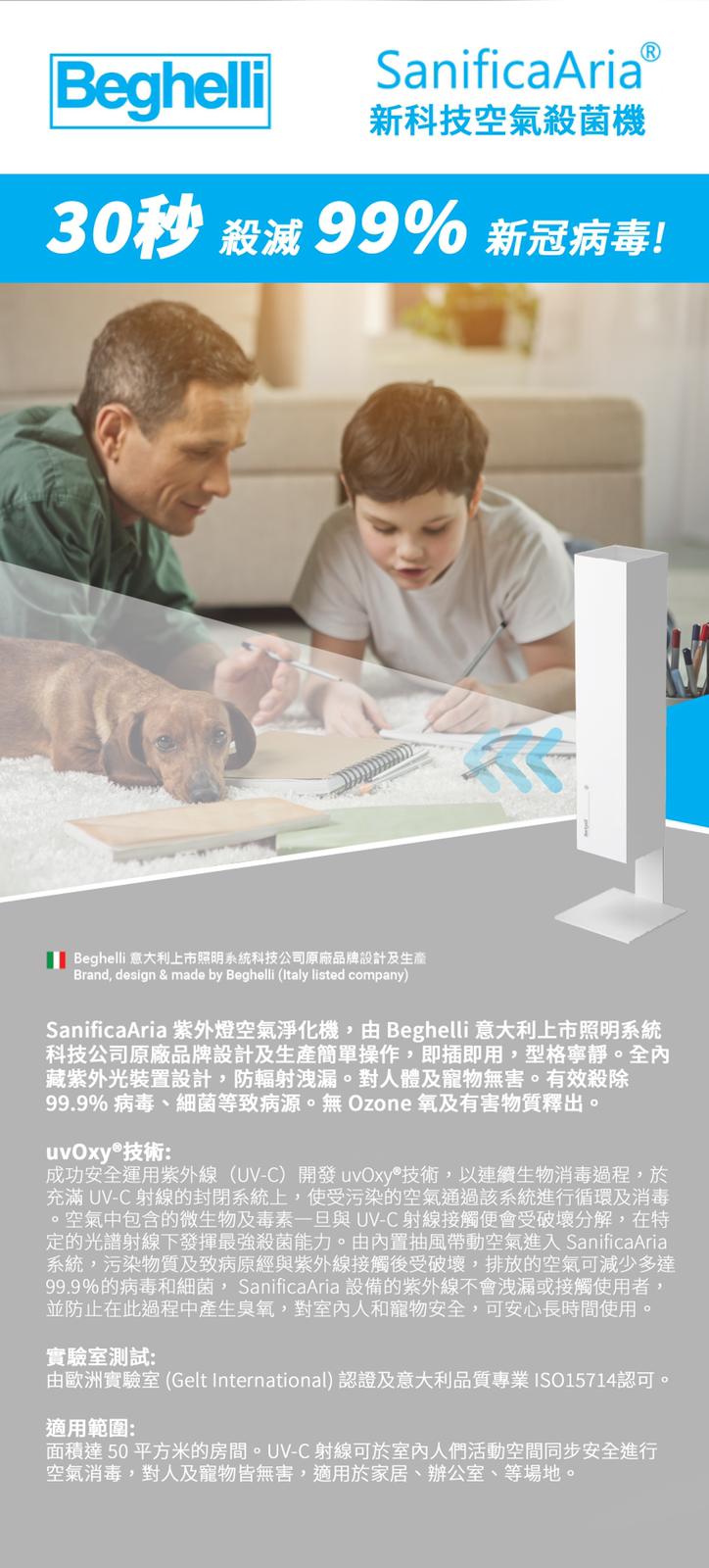 SanificaAria #空氣消毒殺菌機 #空氣淨化 #消毒 #殺菌 #意大利 #無輻射 #無臭氧 #UV燈 #紫外線 #學校 #醫院 #酒店 #辦公室 #商店 #家居 #ISO認可 #UVC
