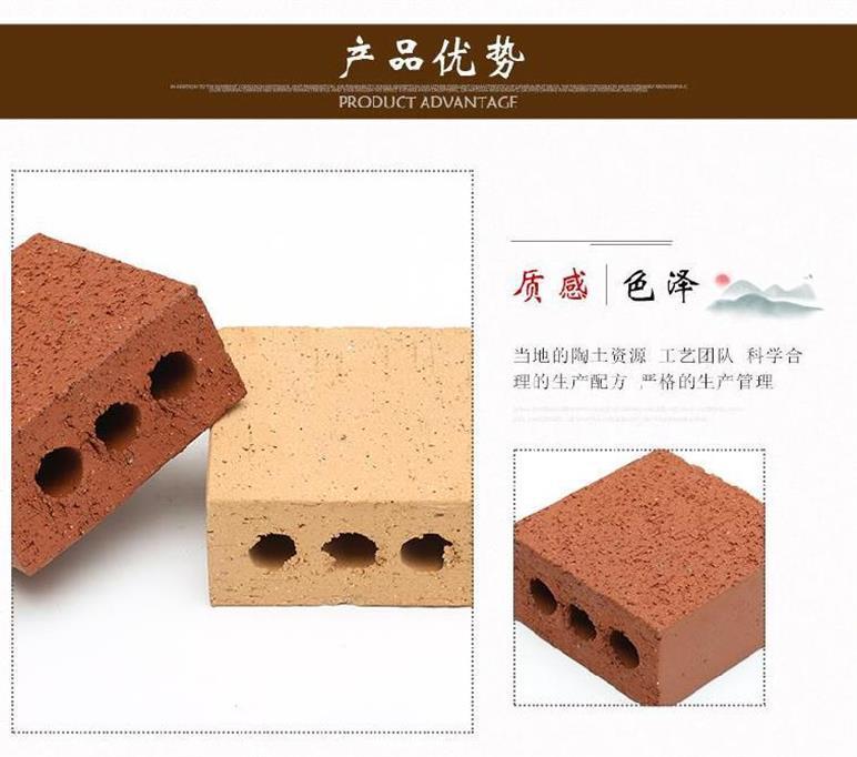燒結磚 陶土空心燒結磚 廣場真空陶土磚 棕色50厚人行道磚