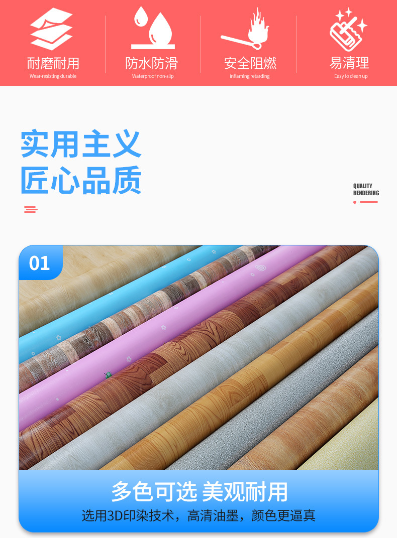 pvc地板革水泥地膠墊直接鋪加厚耐磨 防水塑料地毯自粘地貼紙家用