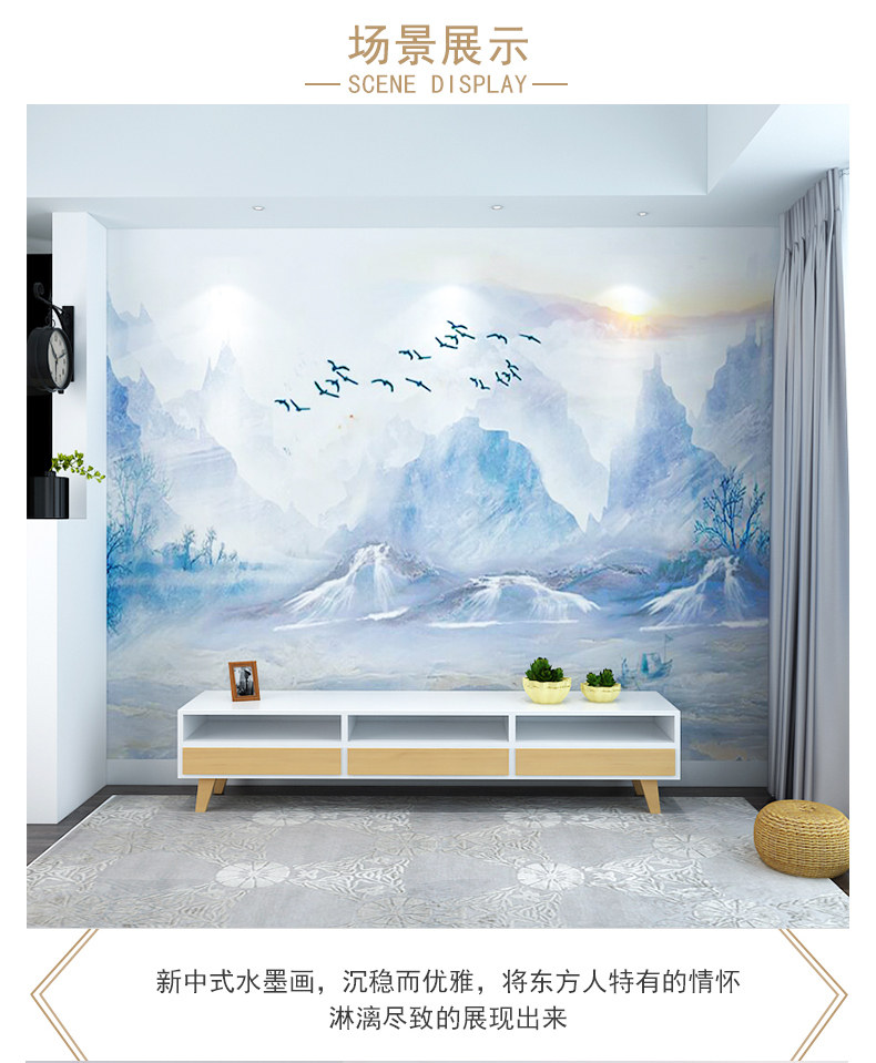 新中式牆布電視背景牆臥室客廳沙發牆紙現代抽象山水無縫定製壁畫
