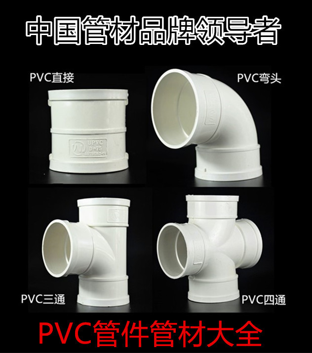 PVC排水管下水管配件管件50 75 110 160 200 直接 彎頭 三通 四通