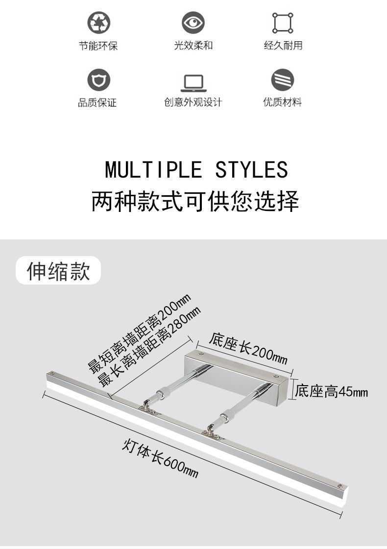 源頭廠家鏡前燈梳妝檯化妝燈超亮化妝鏡補光燈帶客廳背景自粘調光