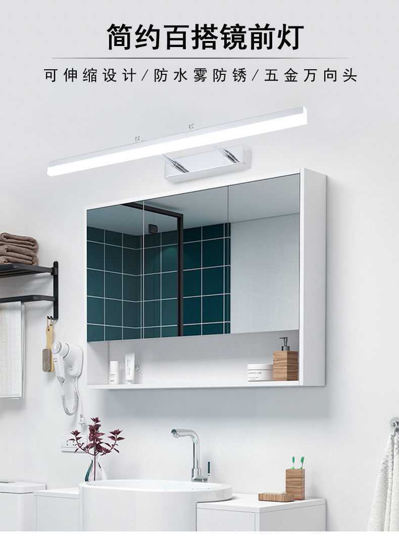 歐奐免打孔浴室鏡前燈簡約鏡櫃燈化妝燈防水霧led衛生間梳妝檯燈