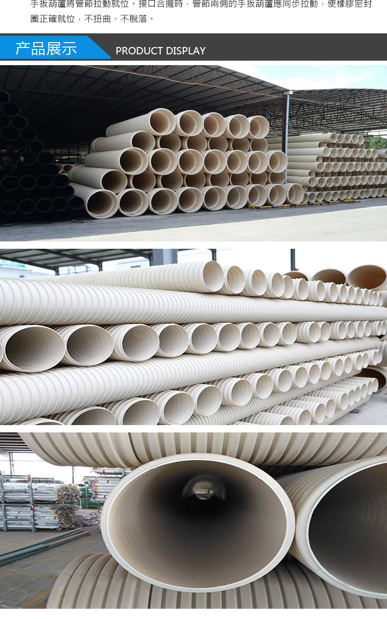聯塑UPVC雙壁波紋管DN300排水管Pvc波紋管500pvc線管PVC