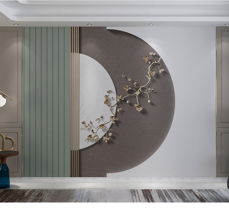 現代簡約輕奢壁布客廳電視背景牆壁紙莫蘭迪色系立體梅花幾何壁畫