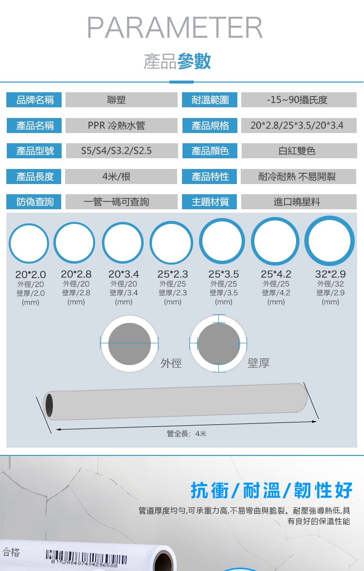 PPR家裝熱水管熱熔加厚
