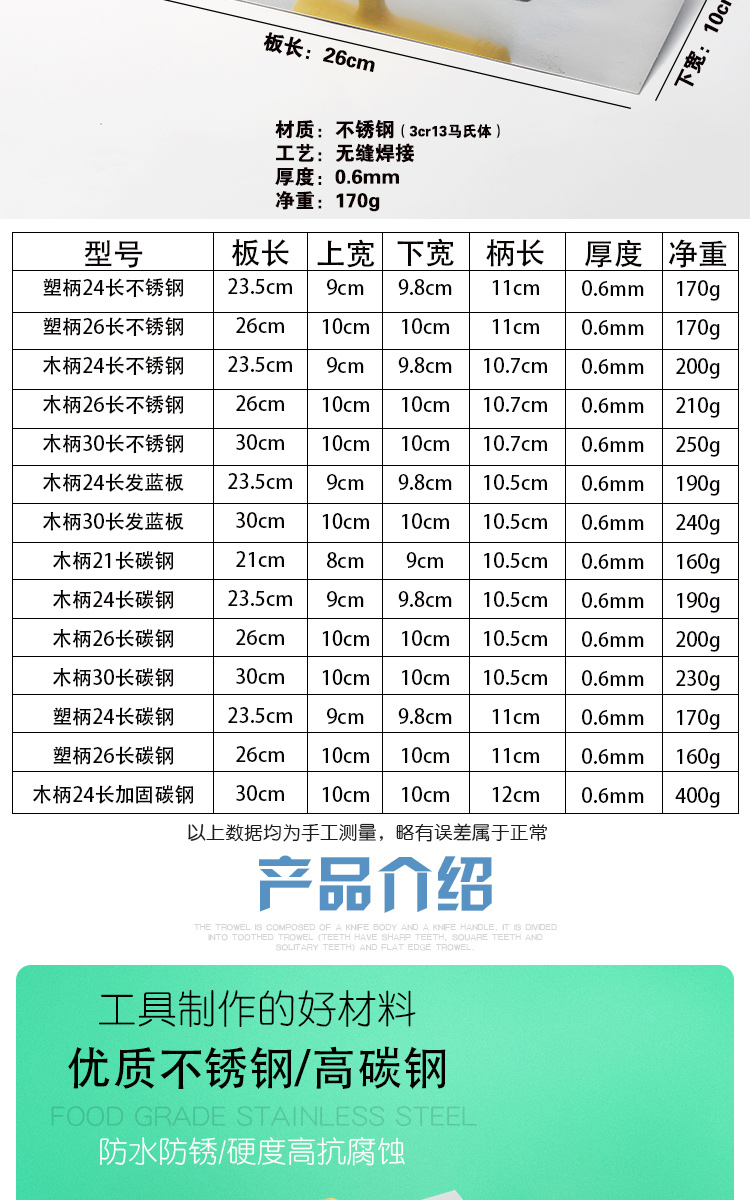 不鏽鋼抹泥板水泥厚漿批刀抹泥刀批牆刀砌磚刀平抹沙灰板