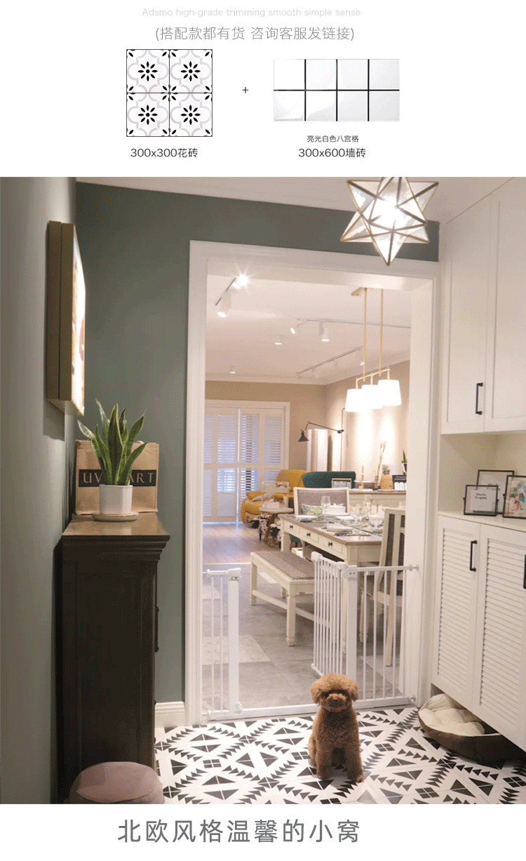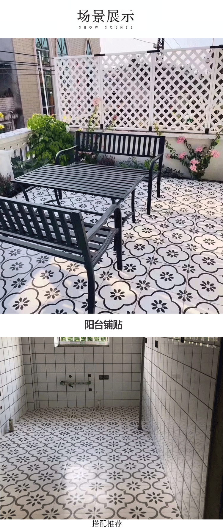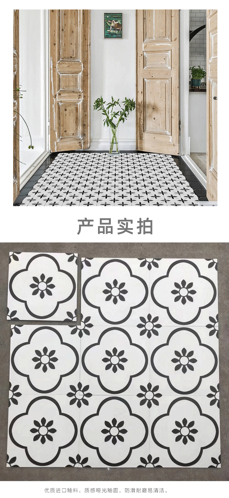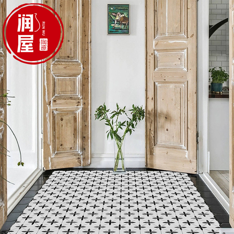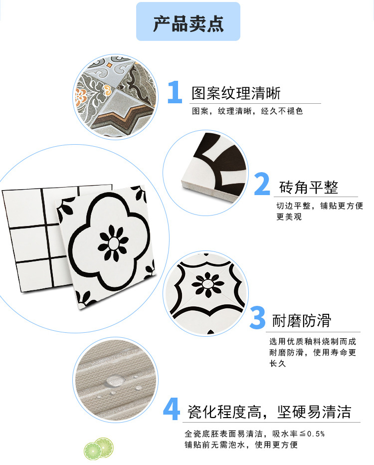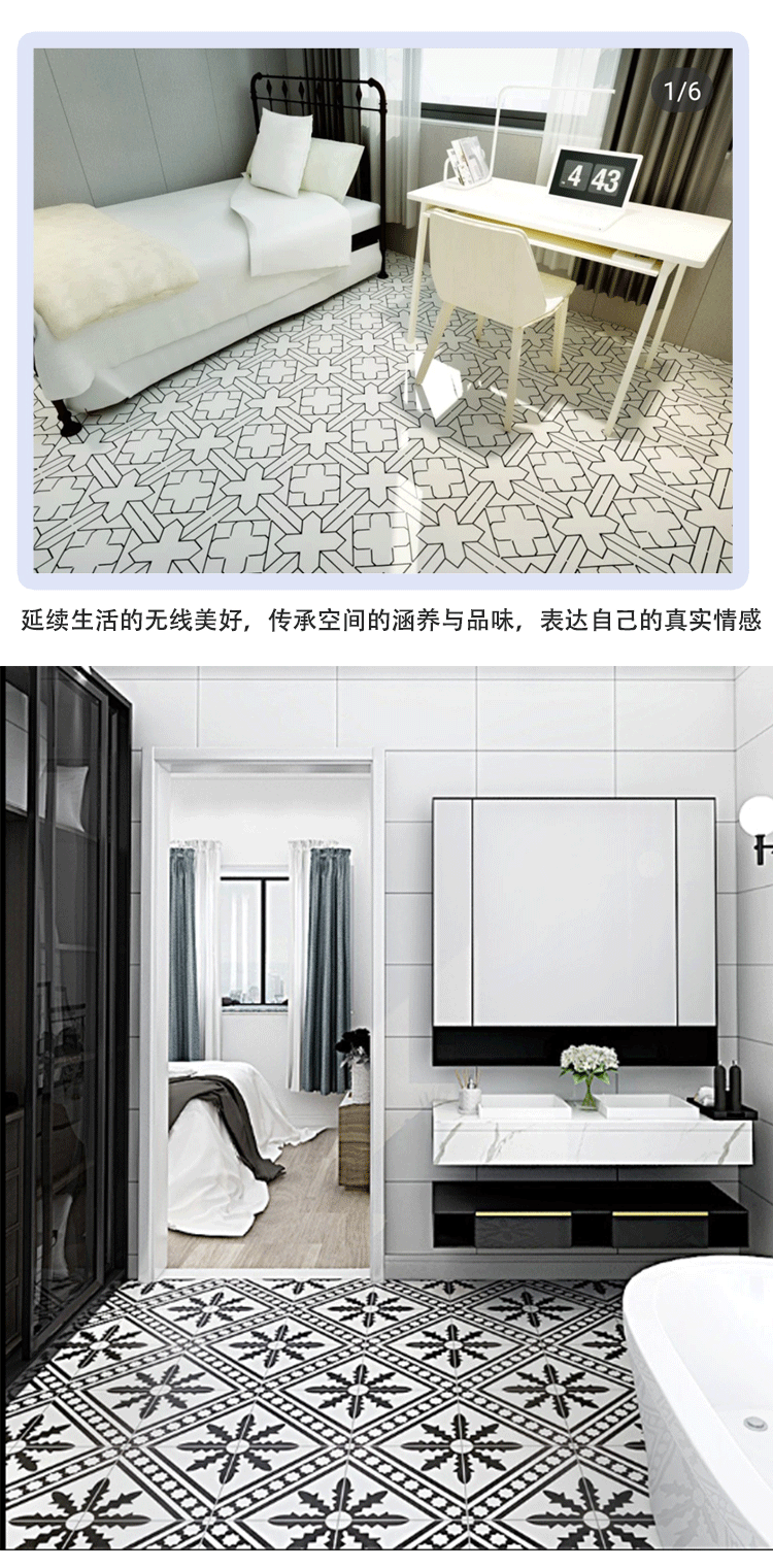 北歐黑白配個性花磚300x300衛生間地磚 防滑廚房陽臺牆磚浴室瓷磚