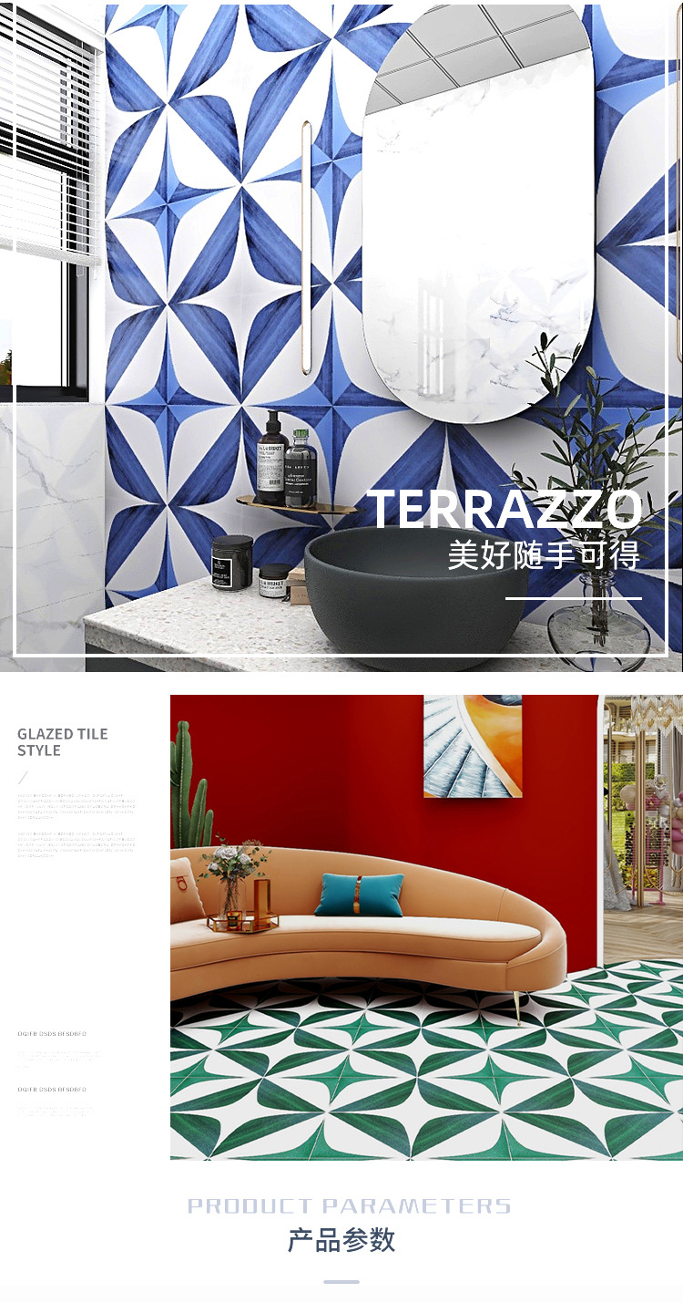 意大利現代簡約質感復古藍色漸變全瓷手工磚網紅吧檯廚衛瓷磚150