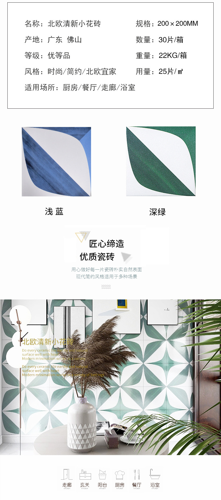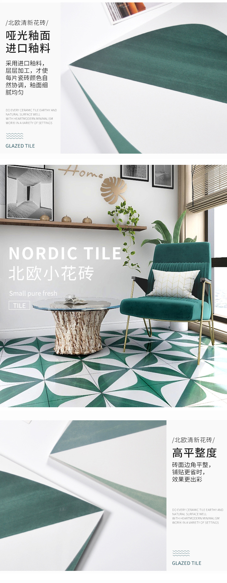 輕奢風摩洛哥復古墨綠色花磚入戶衛生間廚房陽臺防滑地磚民宿瓷磚