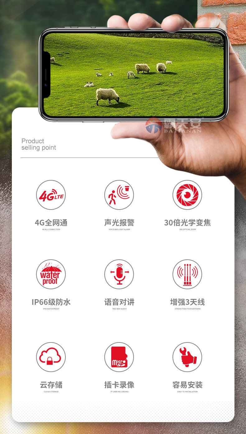 4g太陽能攝像頭監控器無線wifi野戶外遠程連手機高清室外無需網絡