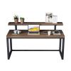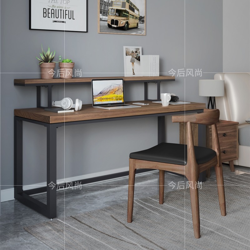 實木電腦桌書架組合小戶型家用書房靠牆書桌簡易無甲醛兒童學習桌