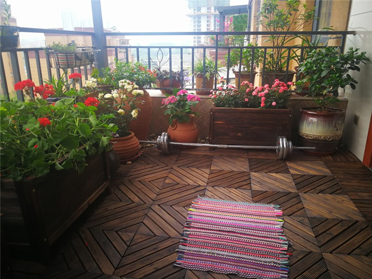 陽臺地板拼接實木碳化防腐木露臺室外庭院花園浴室木質戶外木地板